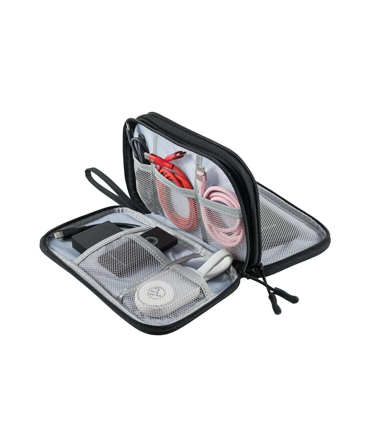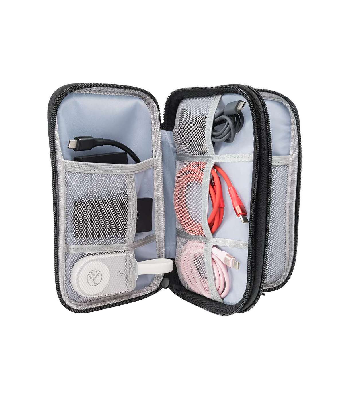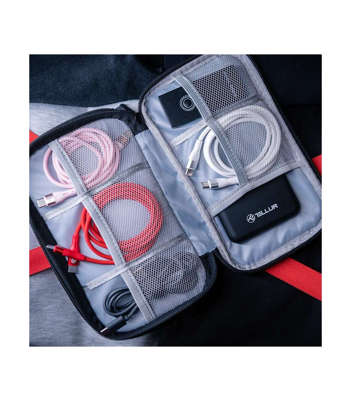 Kaks lahtrit ja mitu taskut tehniliste tarvikute organiseerimiseks ja hoiustamiseks