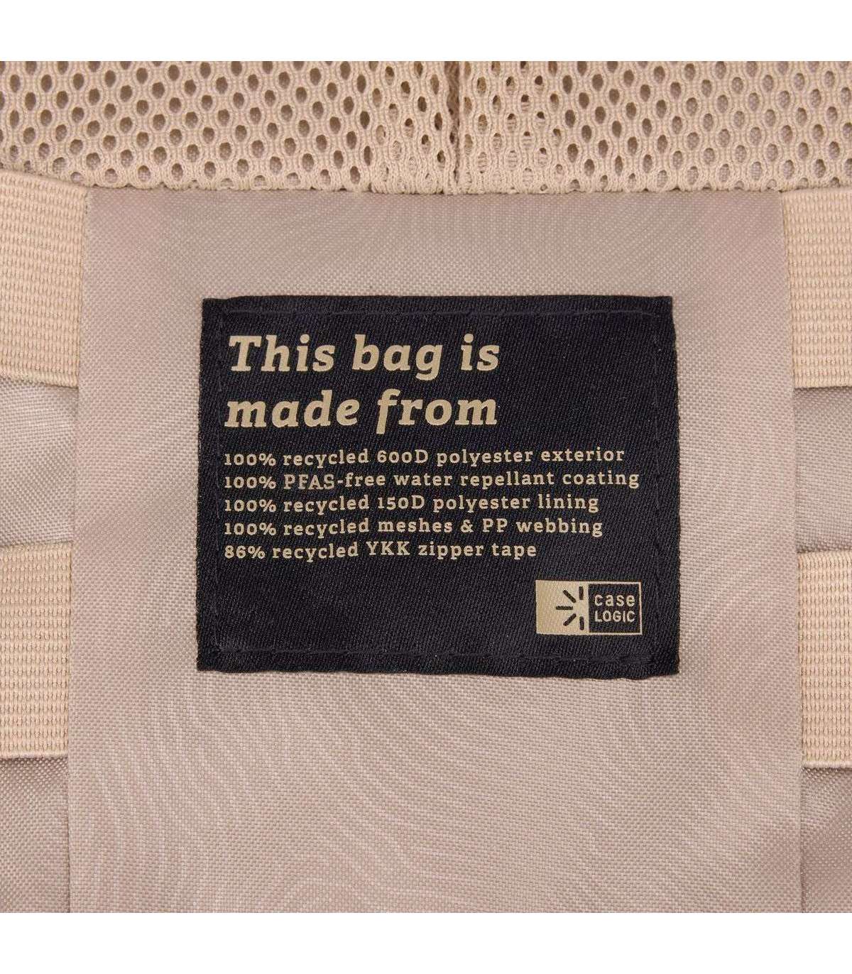 Эта сумка изготовлена из 100% переработанного полиэстера 600D снаружи, подкладки из полиэстера 150D, сеток, полипропиленовой ленты и на 86% переработанной ленты-молнии YKK. Водоотталкивающее покрытие также не содержит ПФУ — химикатов, вредных для окружающей среды.