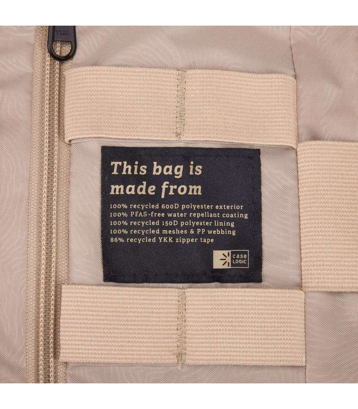 Эта сумка изготовлена из 100% переработанного полиэстера 600D снаружи, подкладки из полиэстера 150D, сеток, полипропиленовой ленты и на 86% переработанной ленты-молнии YKK. Водоотталкивающее покрытие также не содержит ПФУ — химикатов, вредных для окружающей среды.