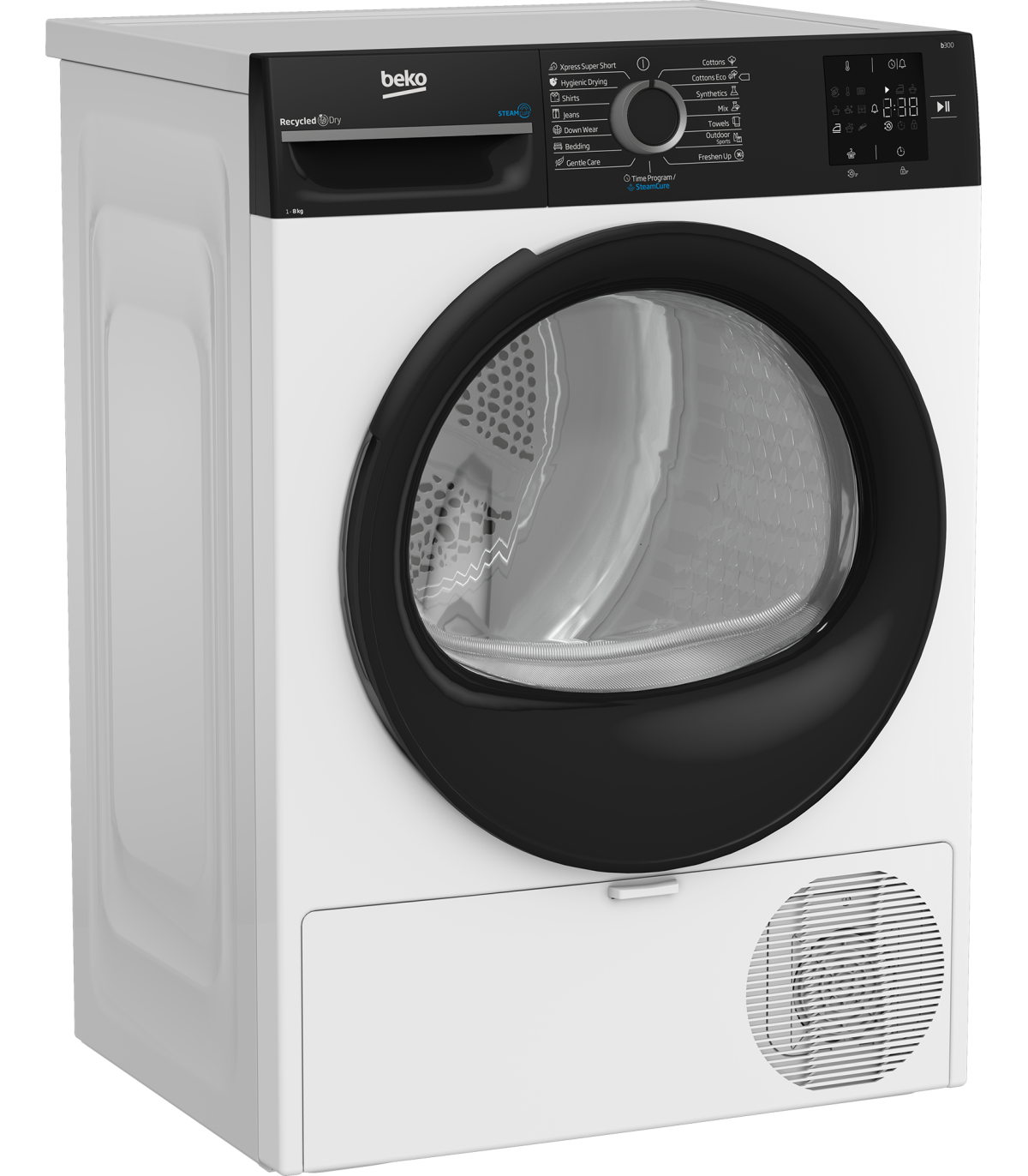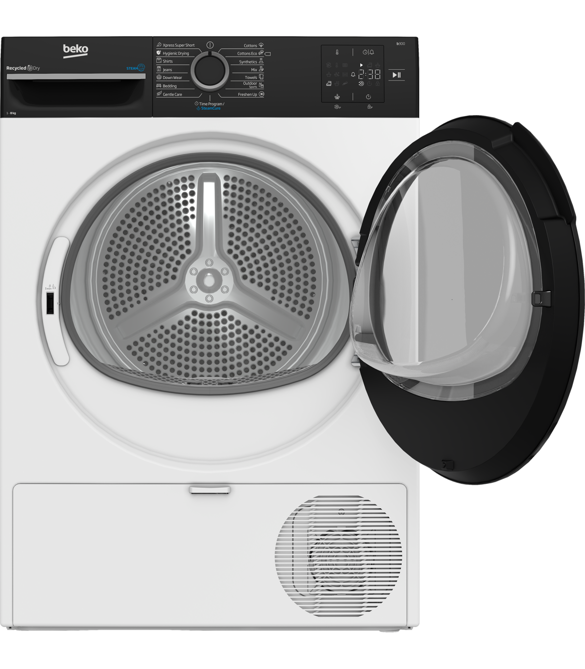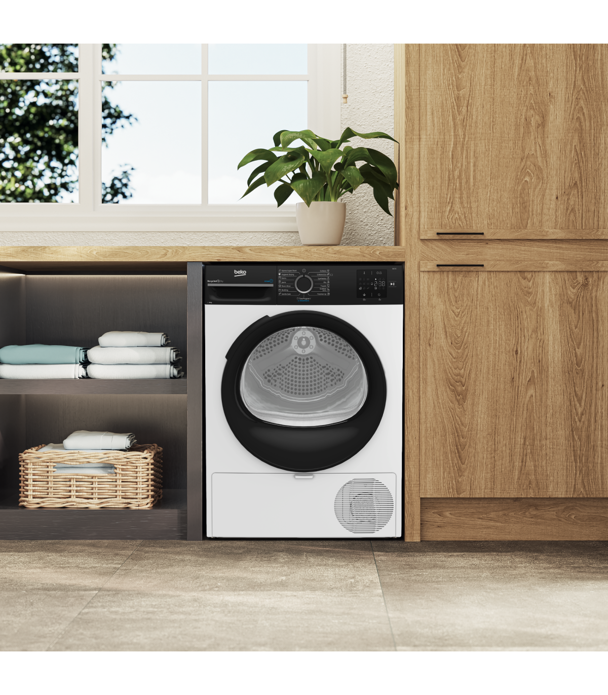 Condensing heat pump tumble dryer provides excellent efficiency and low energy consumption. The innovative technology using cooling and a heat element pump gives the best results even at low temperatures.