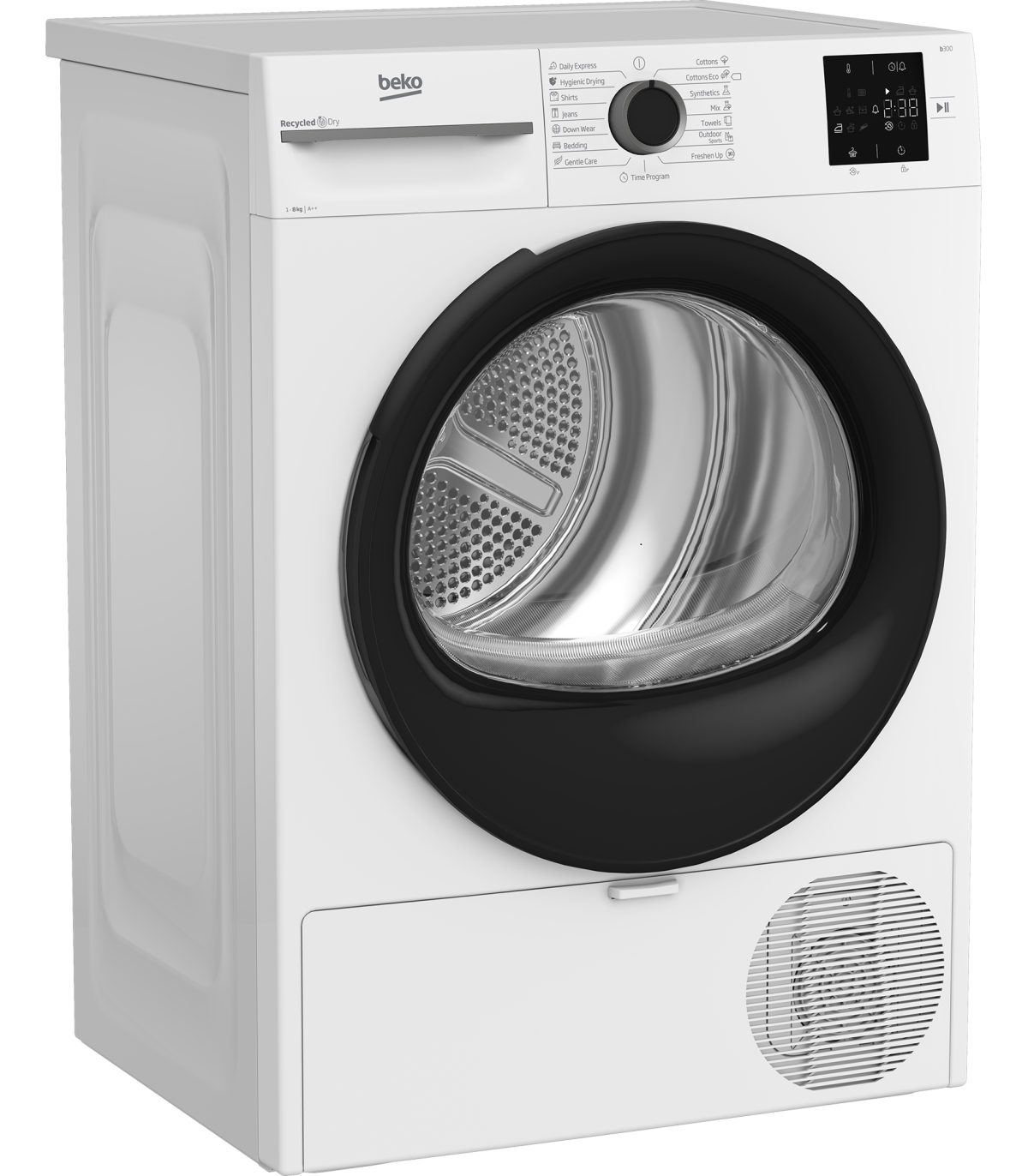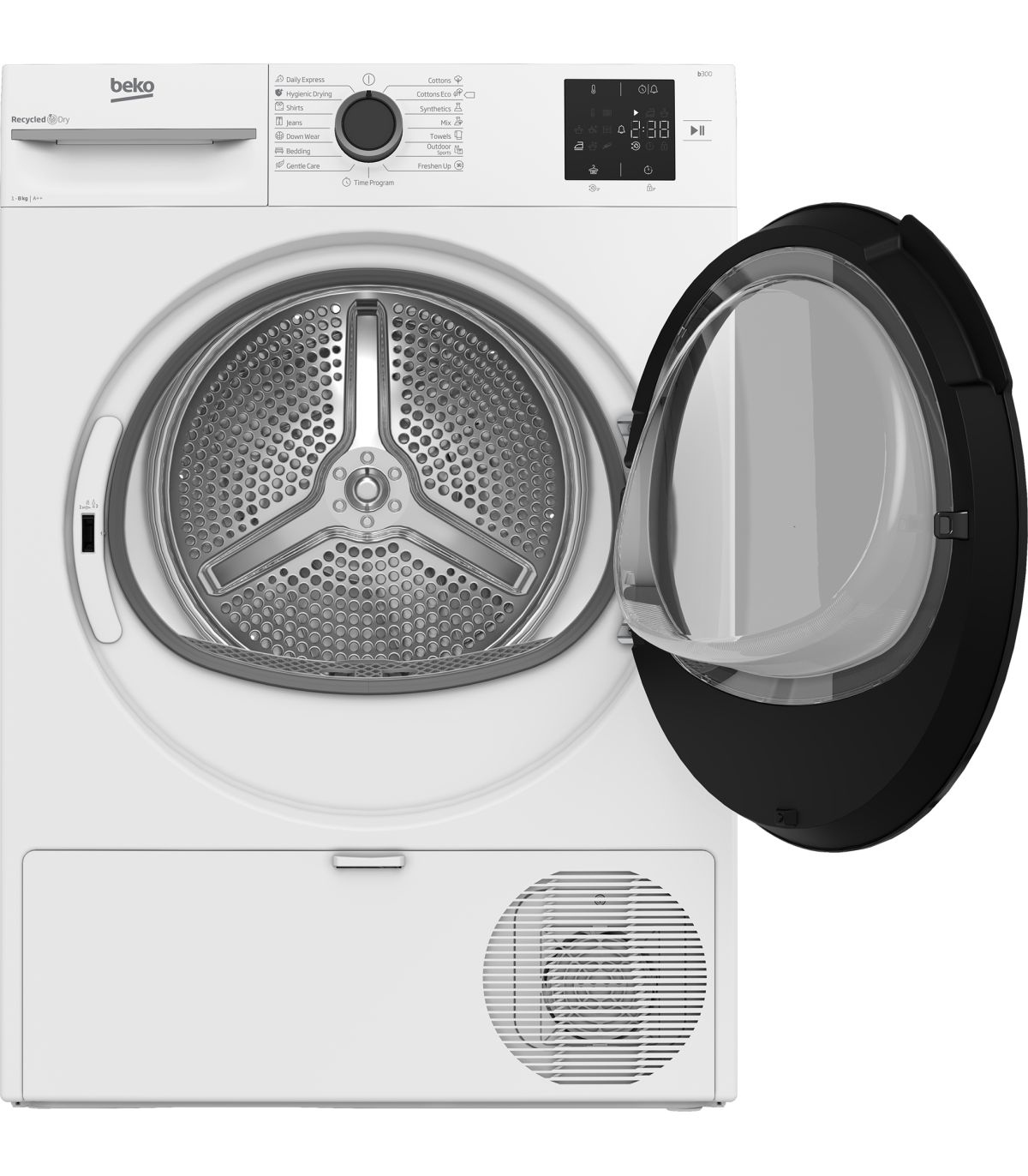 Condensing heat pump tumble dryer provides excellent efficiency and low energy consumption. The innovative technology using cooling and a heat element pump gives the best results even at low temperatures.