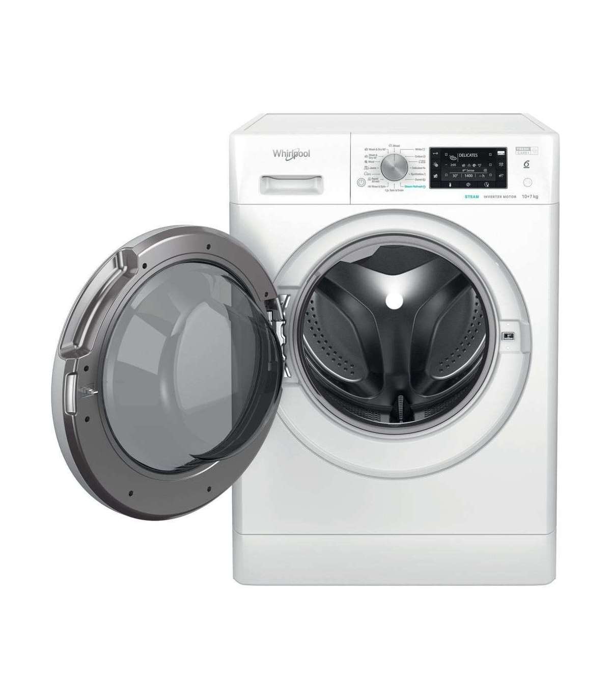 Washer-dryer with Whirlpool 6th Sense technology and a refreshing steam function!