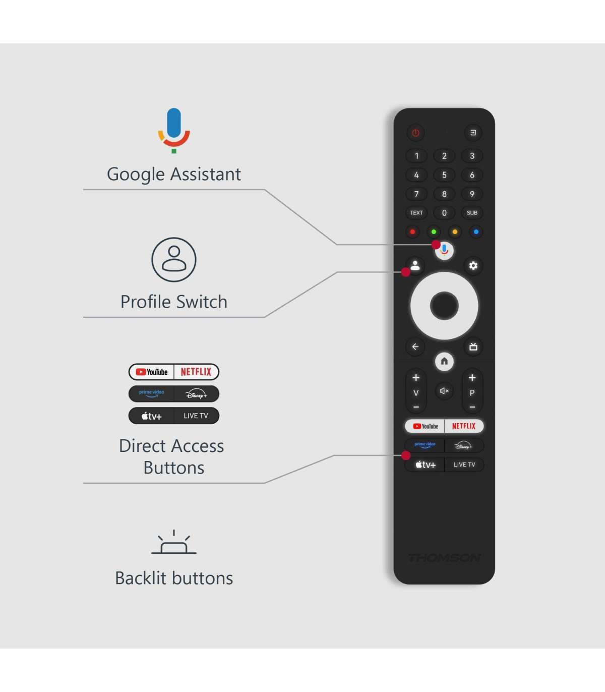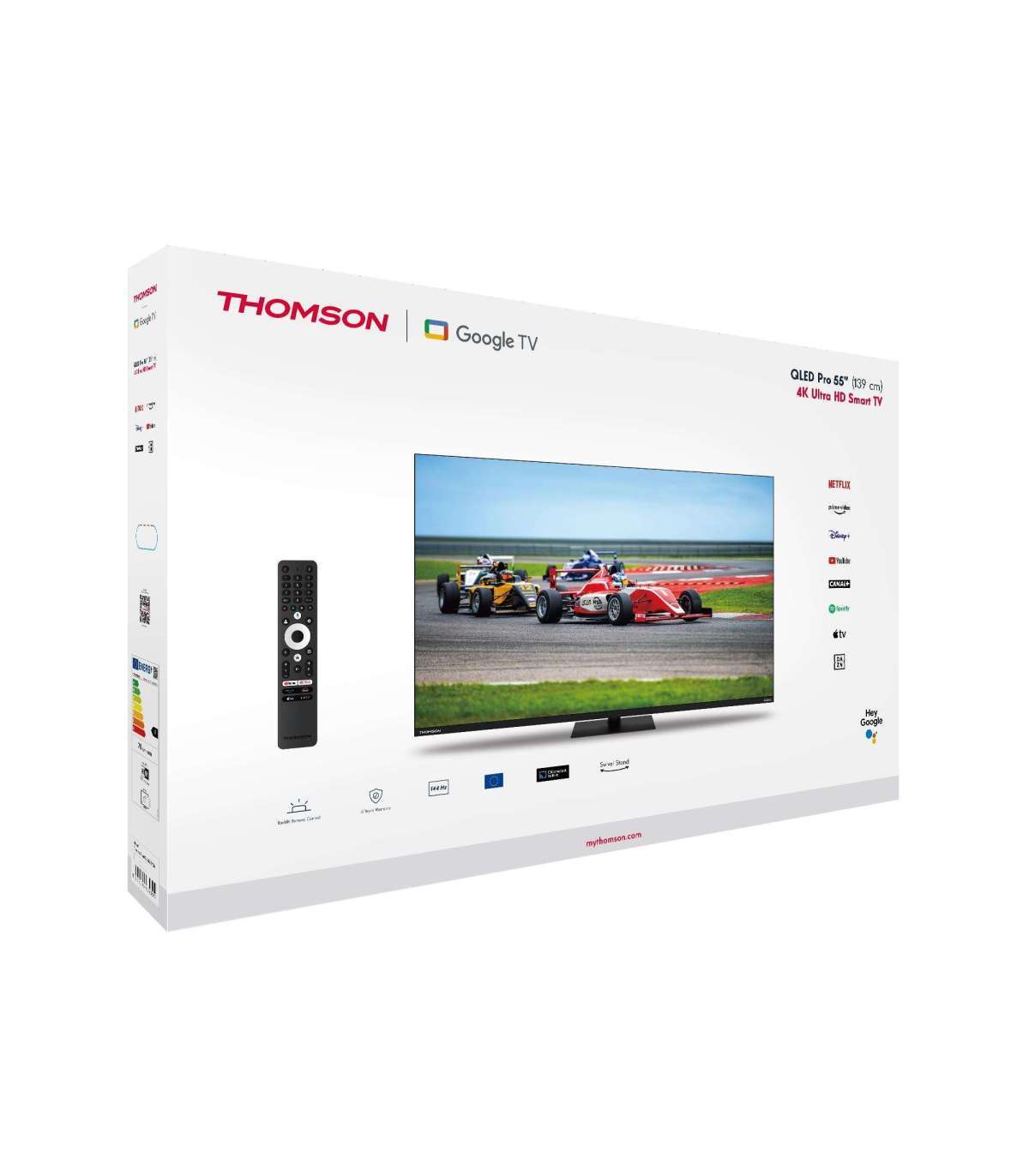 Experience fluent images and high responsiveness in rich 4K UHD quality with the Thomson Google TV 55" QLED Pro.