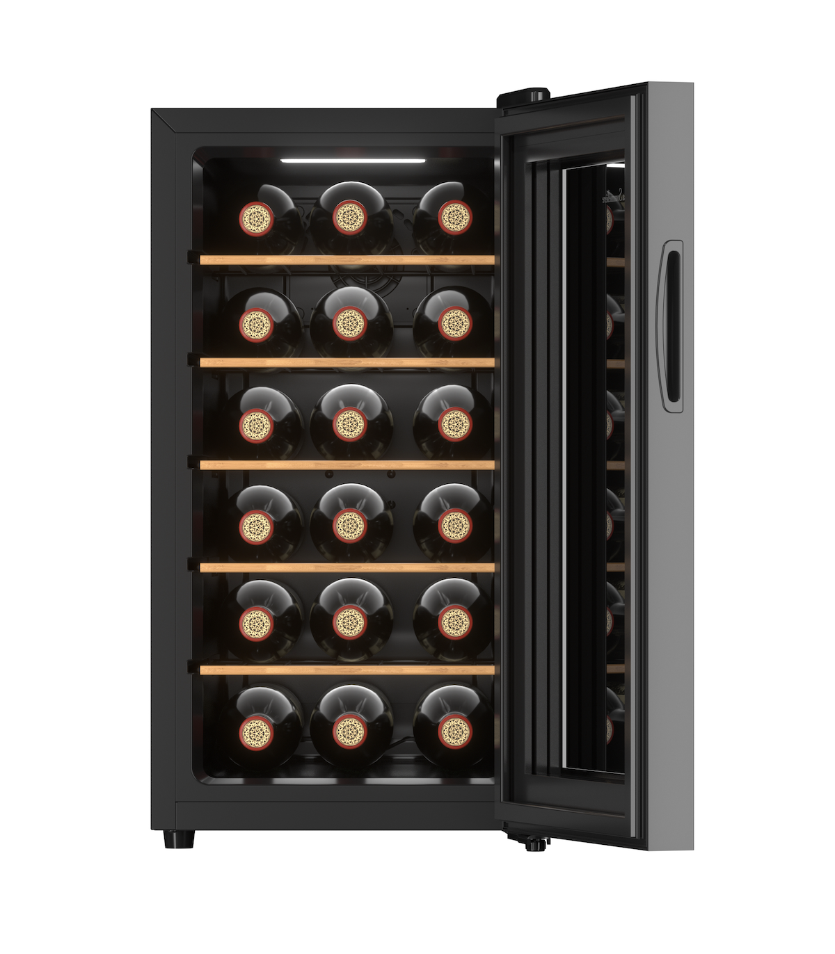 Full glass door, discreet integrated handle and exterior digital control panel allow quick handling and easy access to the wines.