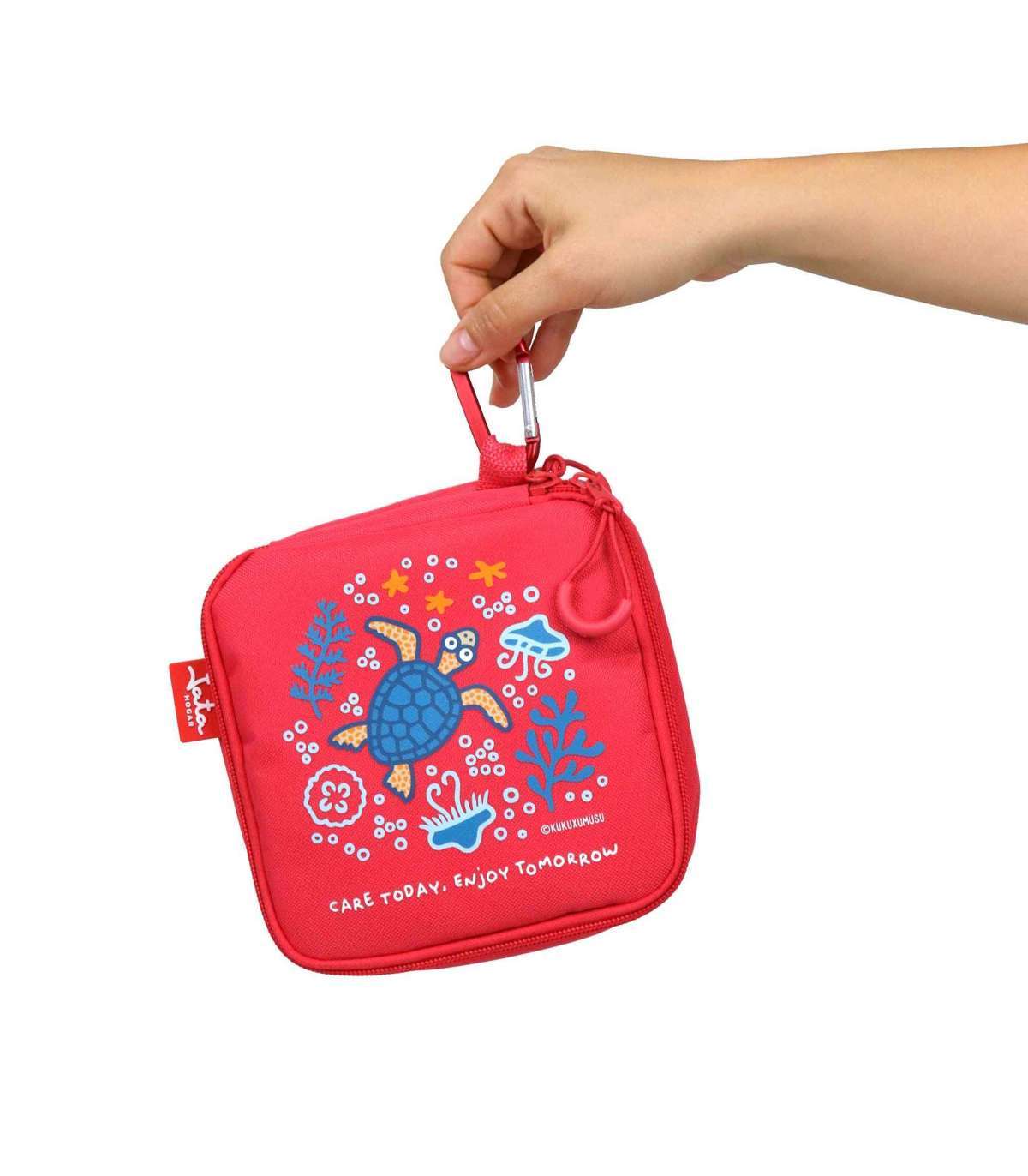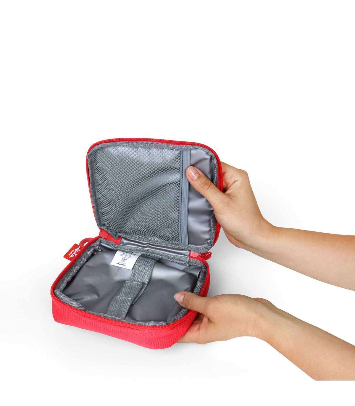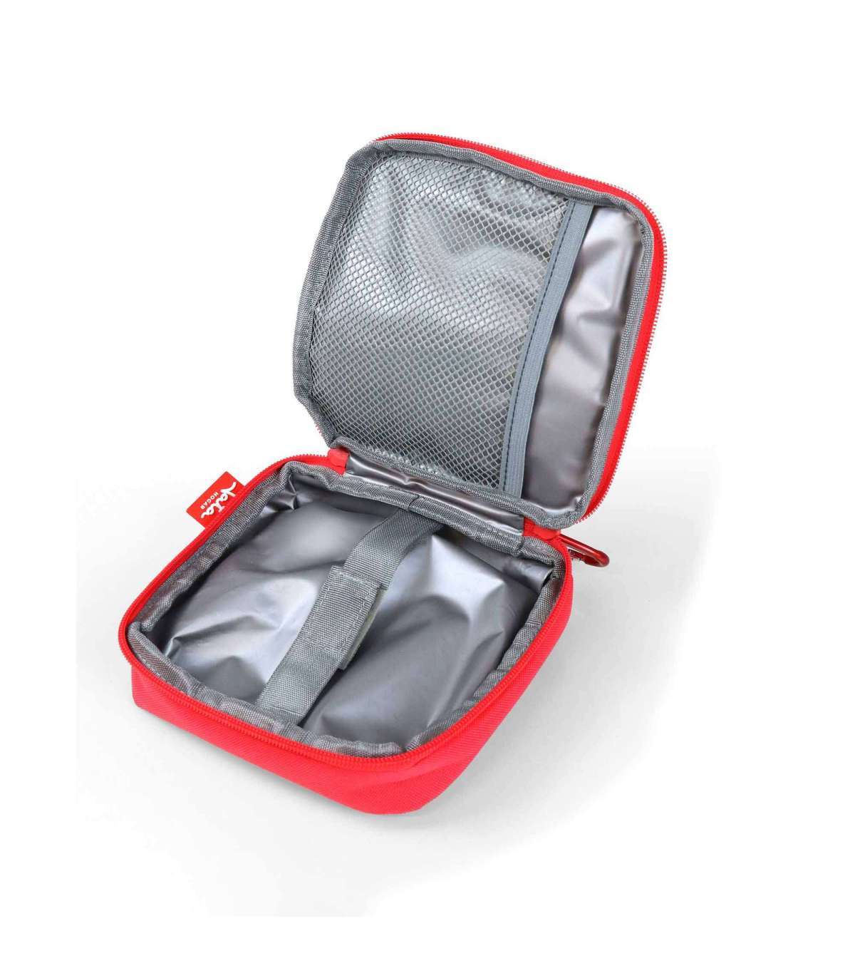 Sisaldab sisemist teipi sisu hoidmiseks ning võrktasku söögiriistade ja salvrätiku jaoks