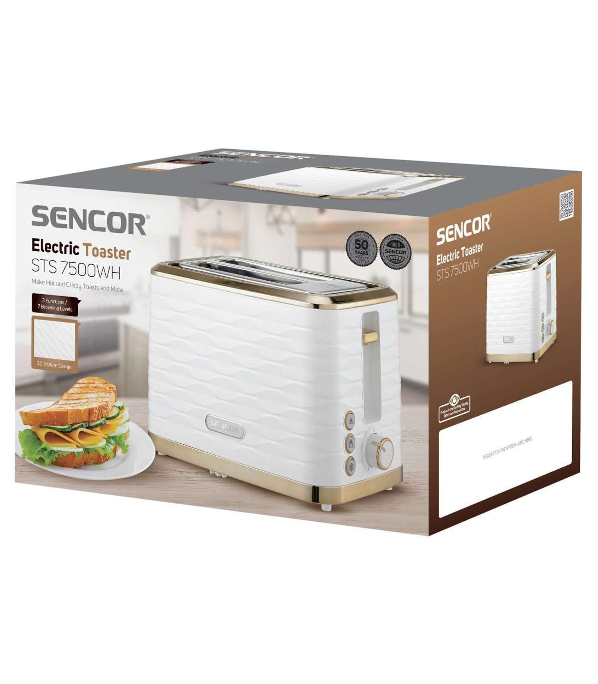 Beautifully designed two-slice toaster Sencor STS7500WH for everyday use.
