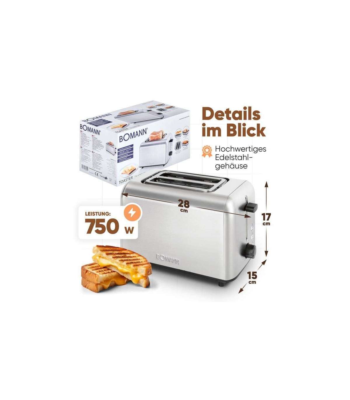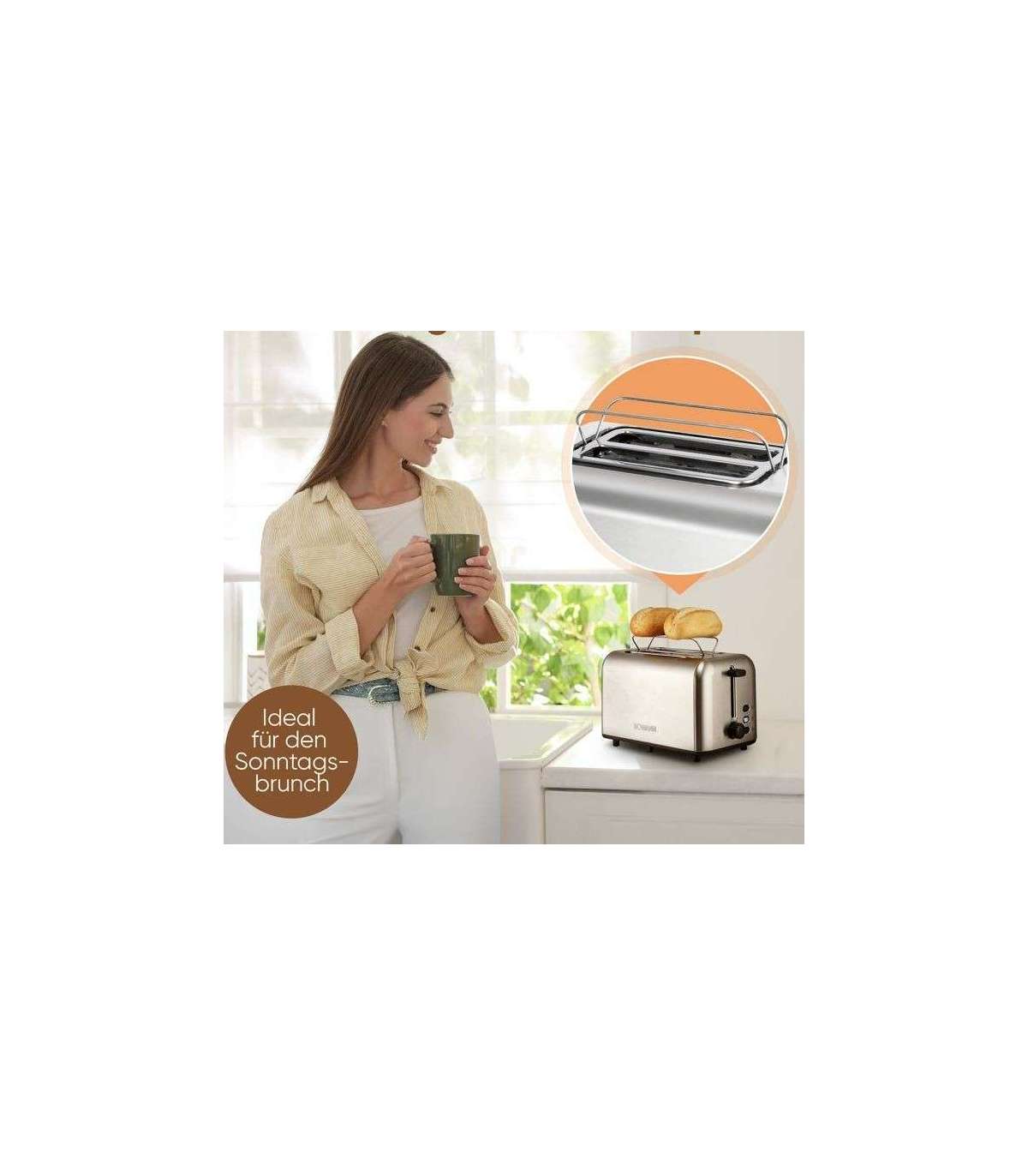 The Bomann TA6080CB compact 2-slice toaster allows you to make delicious golden brown toast and warm buns, croissants and waffles on the removable bun rack.