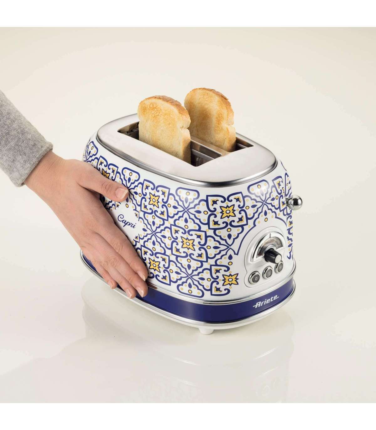 Refined design and cutting-edge functionality to transform your kitchen into an oasis of beauty, the Mediterranean charm of this Ariete toaster is inspired by the unique and vibrant style of the beautiful island of Capri.