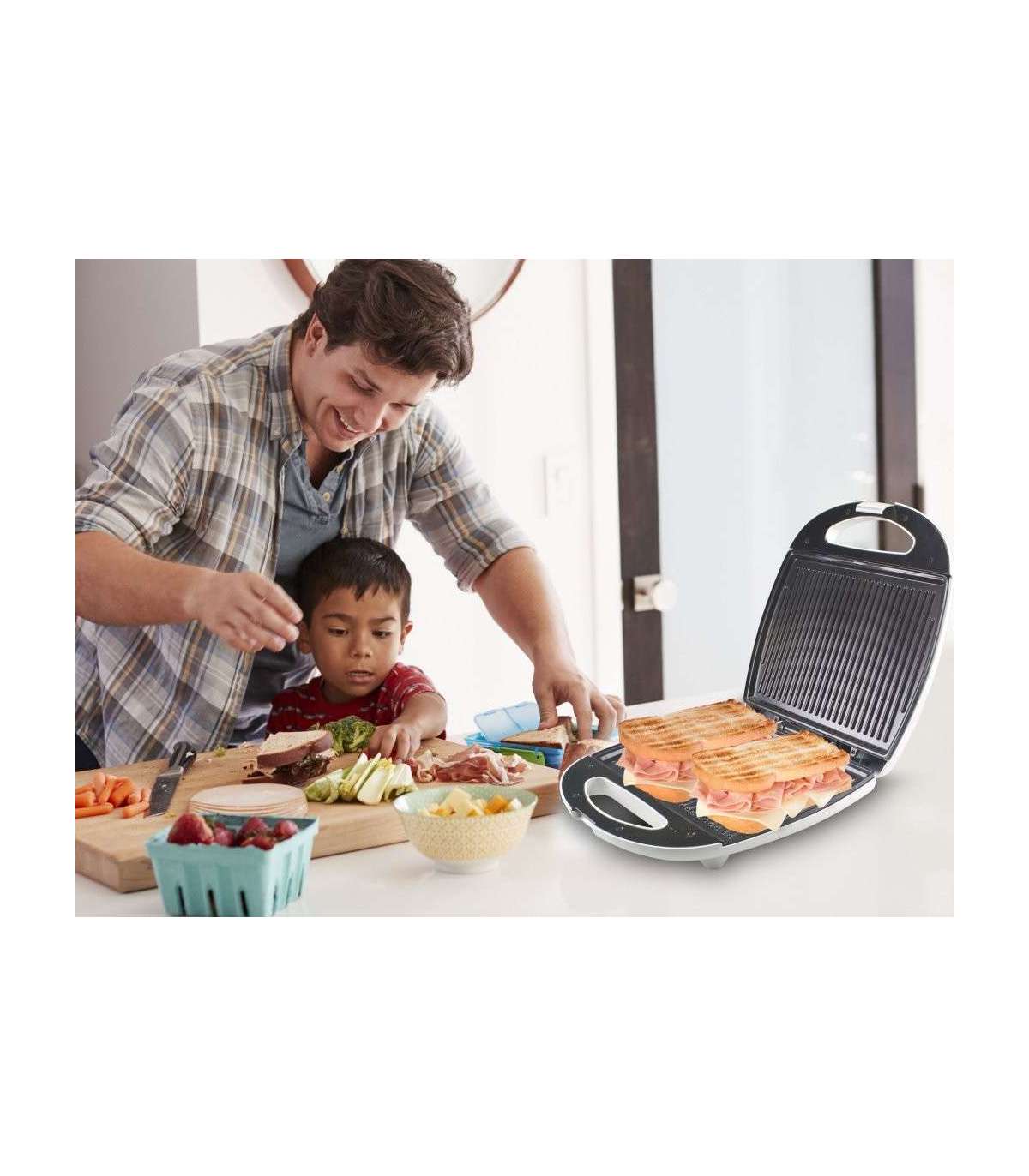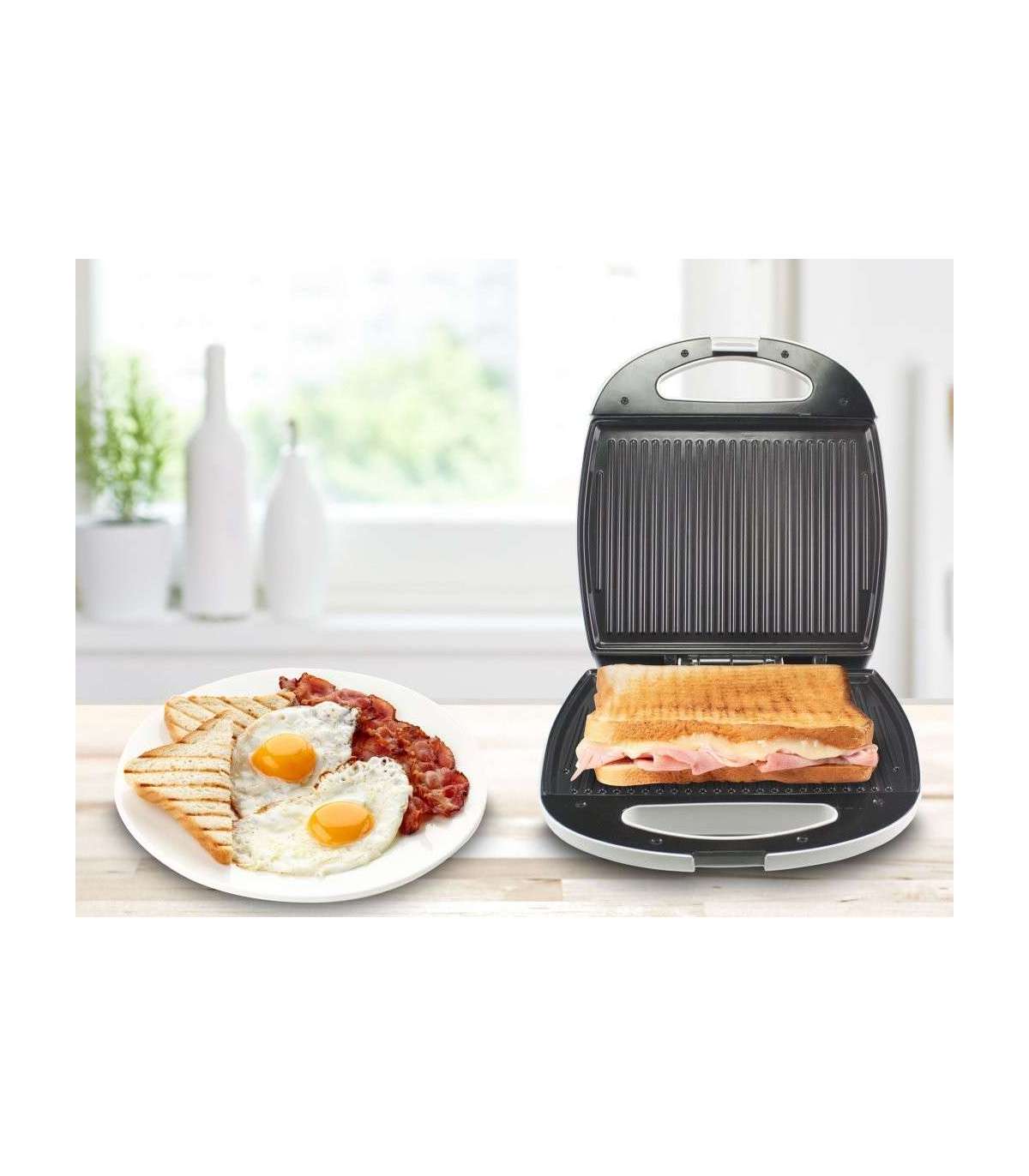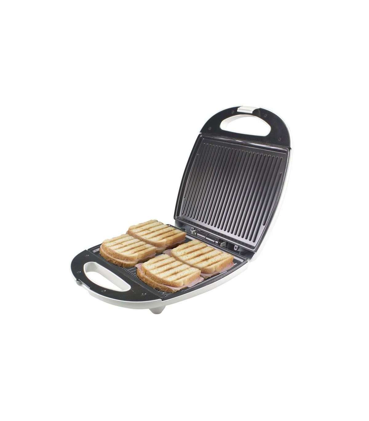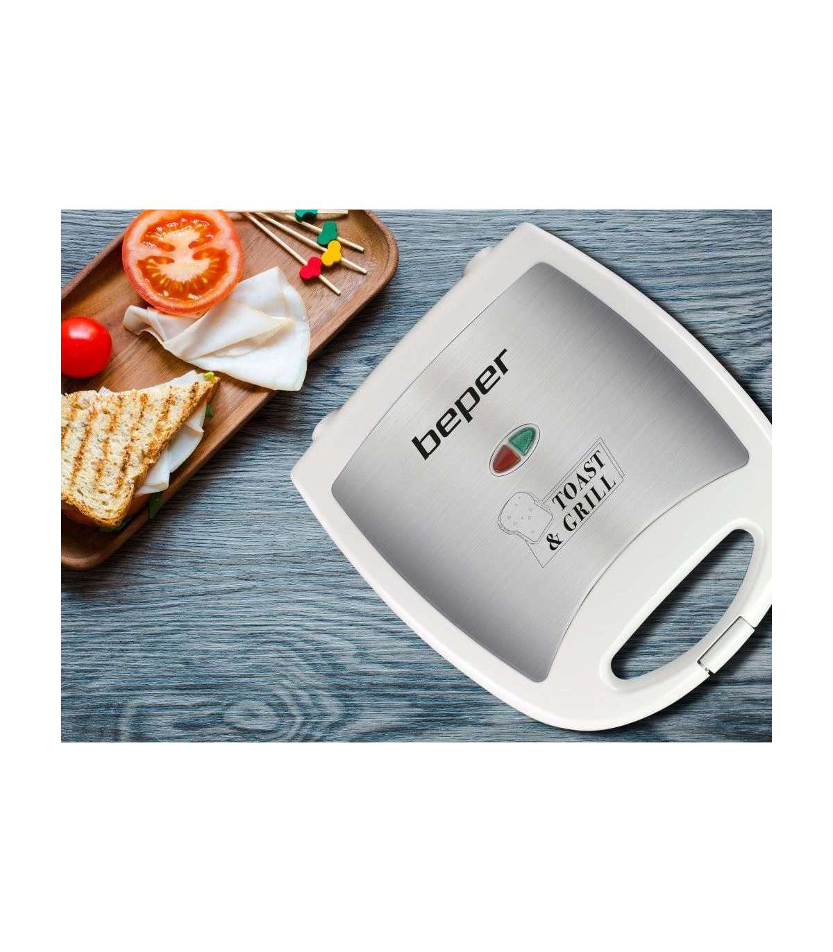Тостер с внешней структурой из бакелита и решетчатыми пластинами MAXI с антипригарным покрытием размером 28 x 21 см идеально подходит для 4 ломтиков хлеба. Термоизолирующая ручка с закрывающимся крючком. Оснащен красной лампочкой работы и зеленой лампочкой готовности к приготовлению. Устойчивые нескользящие ножки и устройство для намотки шнура.