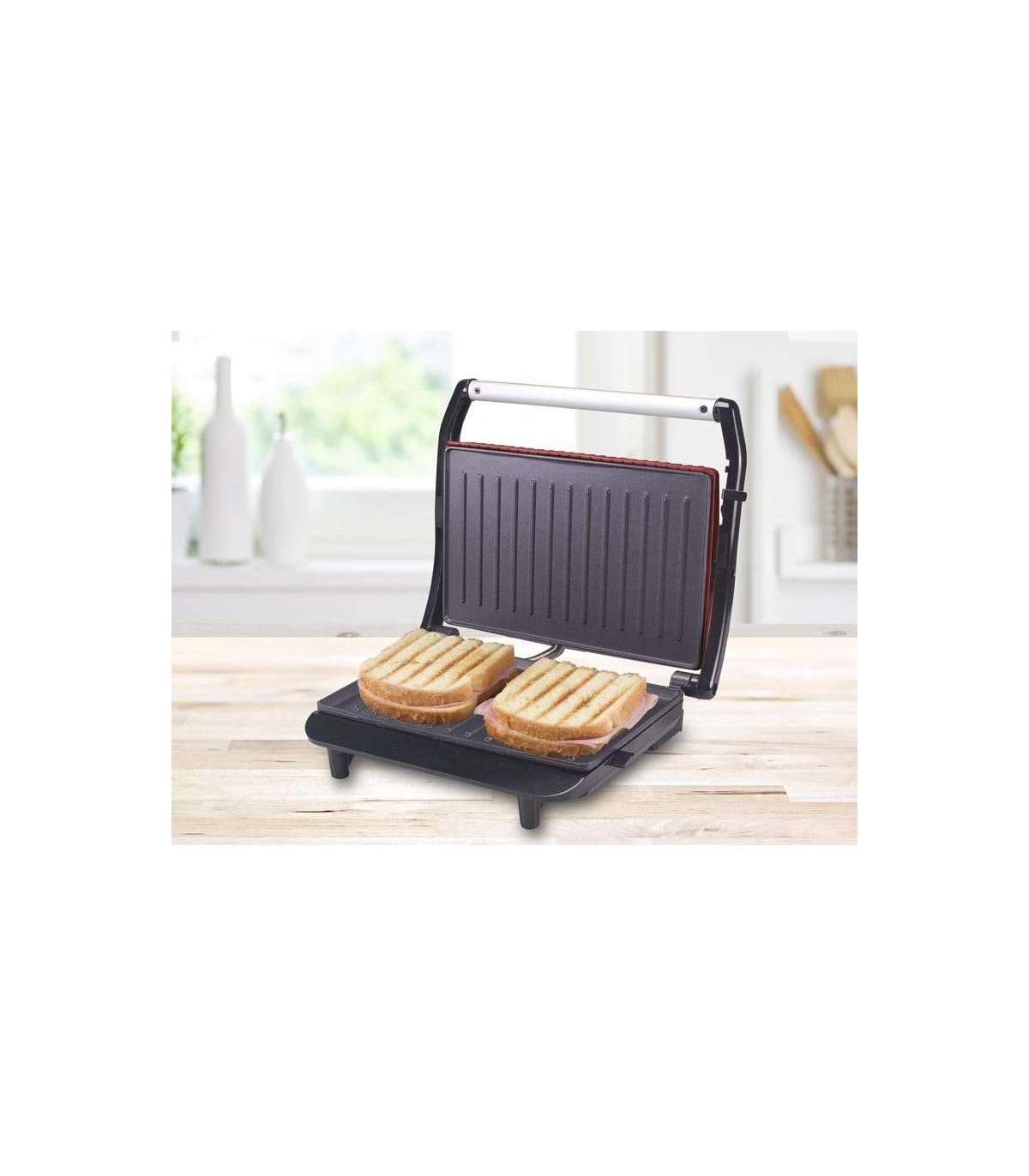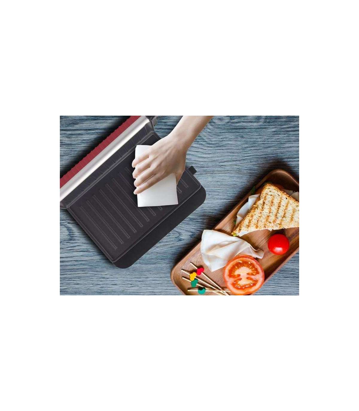 Компактная панини машина с корпусом из пластика и бакелита и алюминиевой ручкой. Решетчатые пластины с антипригарным покрытием. Идеально подходит для бутербродов с начинкой благодаря структуре, сохраняющей свою толщину. Изолирующая ручка с боковым закрывающимся крючком. Оснащена красной рабочей лампочкой. Устойчивые нескользящие ножки. Размеры пластины: 23 х 14,5 см.