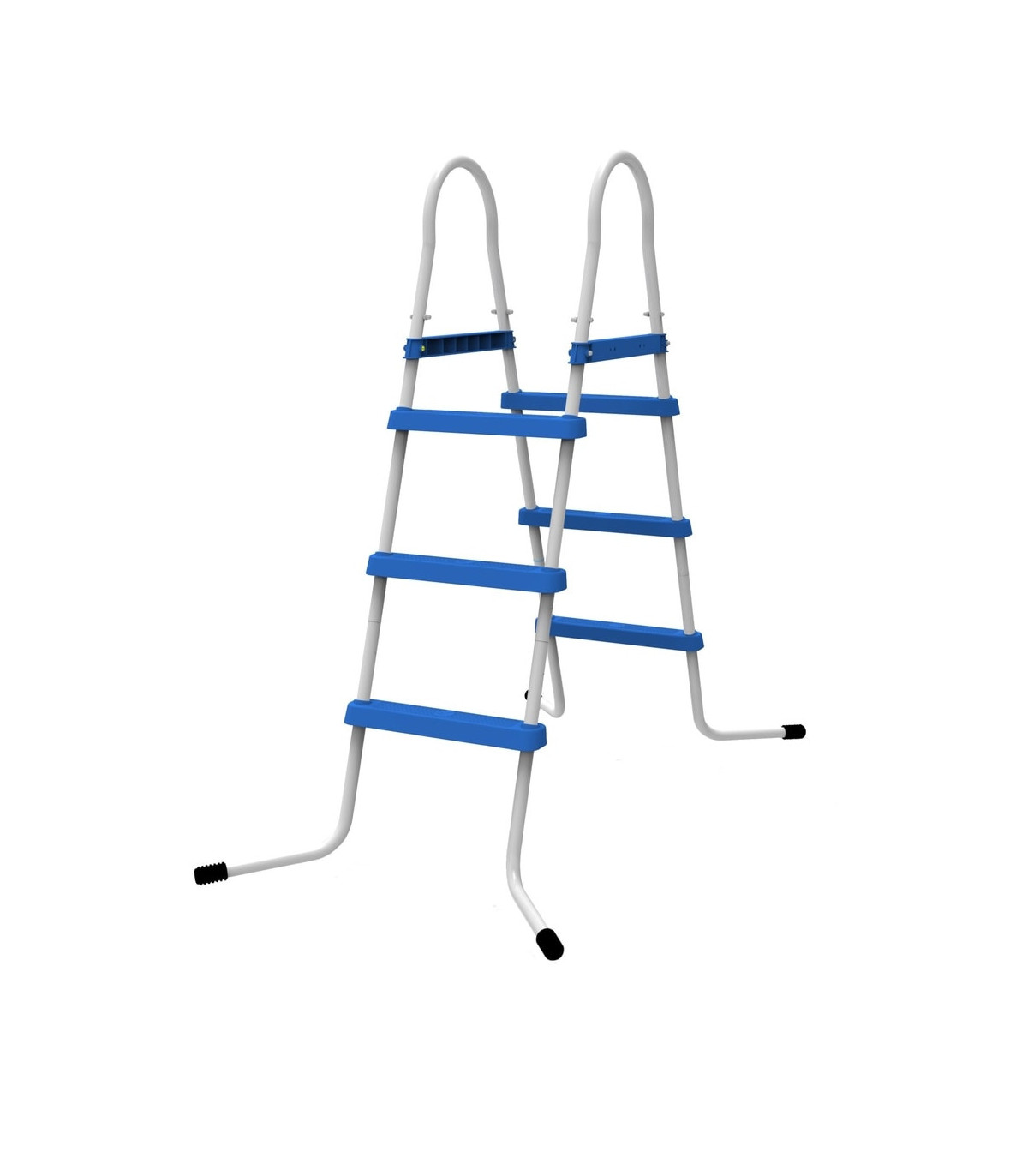 Качественная и устойчивая лестница для бассейнов высотой до 90 см. Основание состоит из стального каркаса, ступени имеют пластиковые ступени, устойчивые к УФ-излучению и химии для бассейнов. Простота сборки и установки.
