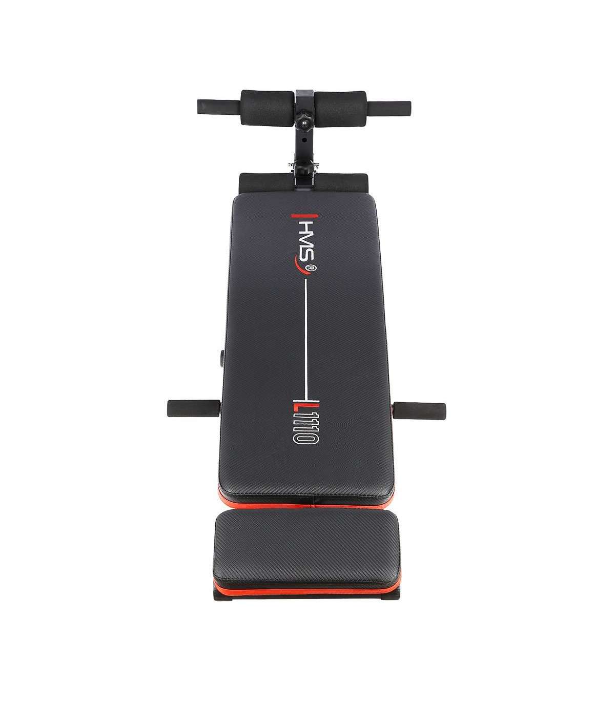 L1110 HMS is an incline bench. Its main goal is to enable doing so-called sit-ups.Stable structure and solid materialsStructure of the bench has been designed to achieve maximum stability and safety. The highest quality materials used to manufacture it provide an additional guarantee of the strength and durability.FunctionalityThe basic exercise on the L1110 bench is a sit-up, but it also enables a user to perform other exercises such as forward position arm flexions i.e. so-called push-ups. Two pairs of supports allow you to perform this exercise in a more or less advanced version.Comfort and convenienceL1110 HMS bench is stable but it is also comfortable. A soft sponge on the backrest and sponges on the foot bars guarantee comfort during a workout. Modern carbon pattern upholstery is resistant to the moisture and the sweat; it prevents the body from slipping during a workout. Inclination level adjustment makes you can easily adjust difficulty of an exercise to your needs. The higher the incline the more advanced the exercise is. The bench comes with resistance bands which are easily and quickly hooked in a specially designed place. The bands enrich your workout and provide a large range of possible exercises.L1110 HMS bench is great equipment in any home gym.Specification:Material: steel, wood, foamDimensions:Length: 140 cmWidth: 50 cmHeight: 52 – 69 cmBackrest:Length: 92 cmWidth: 30 cmThickness: 4 cmHead rest:Length: 14.5 cmWidth: 30 cmThickness: 4 cmInclination adjustment levels: 5Resistance bands includedMaximum load (with user): 200 KGProduct weight: 9 kgRemarks:Not intended for commercial use24 months warrantyImporter: Abisal Ltd. | Poland | 41-807 Zabrze | Pyskowicka Street 17 | e-mail: abisal@abisal.plAbisal Ltd.. declares that the products sold by the company are safe and meet the requirements contained in the Act on General Product Safety of December 12, 2003. (Journal of Laws of December 31, 2003)