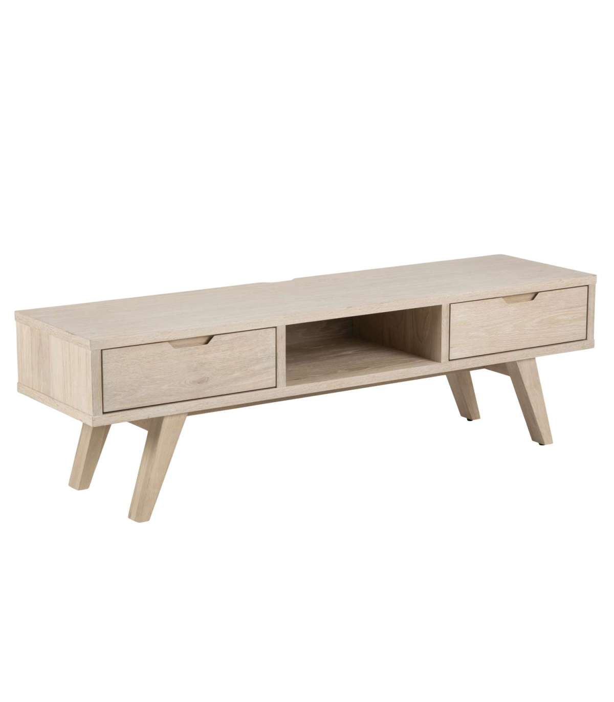 ТВ-стол A-LINE 150x40xH45см, белый дуб, 2 ящика. Каркас/ящики: шпон дуба, покрытый белым пигментным маслом, ножки: дуб, покрытый белым пигментным маслом.