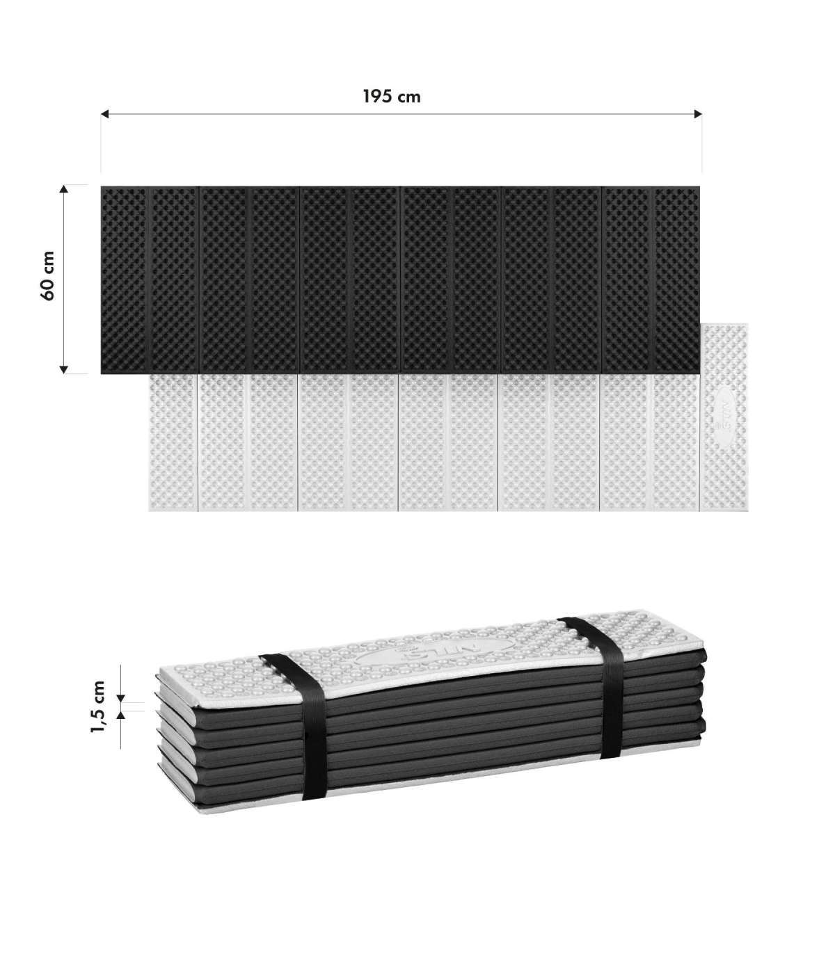 NC17103 – Foldable Camping Mat with Aluminium Frame + XPE 195 cm NILS CAMPNC17103 is a practical and reliable camping mat, designed for camping, trekking and relaxing in nature. Thanks to the use of high-quality materials, it ensures comfort, durability and effective protection against the cold.Durable XPE materialThe core of the mat is made of XPE foam, a material that is highly resistant to deformation and mechanical damage. XPE foam does not absorb water, which means that the mat remains dry and ready for use even in difficult terrain.Aluminium backing – effective insulationThe mat is covered on one side with aluminium foil, which increases its insulating properties. Depending on the weather, the foil side should be positioned accordingly:On cool days and nights – the foil should face upwards, towards the body, to reflect heat and protect against the cold.On hot days – the foil should be in contact with the ground to reflect heat from the heated ground and prevent overheating.This design makes the NC17103 mat effective protection against both cold and excessive heat, ensuring a comfortable night's sleep when camping or trekking.aWaterproof and easy to cleanThanks to the waterproof properties of both the XPE and aluminium layers, the mat does not absorb moisture or dirt, making it easy to keep clean. Even after intensive use, simply wipe the surface with a damp cloth.Foldable design and compactnessThe NC17103 model has been designed in the form of an accordion, which makes it much easier to fold and transport. When folded, the mat takes up a minimum amount of space, so it fits easily into a backpack, travel bag or car boot. Convenient fastening straps help to keep it compact when carrying.Large size – comfortable restThe mat is 195 cm long, allowing even taller people to rest comfortably. Its width of 60 cm and thickness of 1.5 cm provide comfortable support and insulation from the ground, even on uneven terrain.Specification:Dimensions: 195 × 60 × 1.5 cmMaterial: XPE foam, aluminium foilConstruction: foldable (accordion)Properties: waterproof, thermally insulating, easy to cleanInsulation rating: R-VALUE 2.0Application: camping, trekking, hiking, outdoor recreationRemarks:Not for commercial use24 months warrantyImporter: Abisal Ltd. | Poland | 41-807 Zabrze | Pyskowicka Street 17 | e-mail: abisal@abisal.plAbisal Ltd.. declares that the products sold by the company are safe and meet the requirements contained in the Act on General Product Safety of December 12, 2003. (Journal of Laws of December 31, 2003)