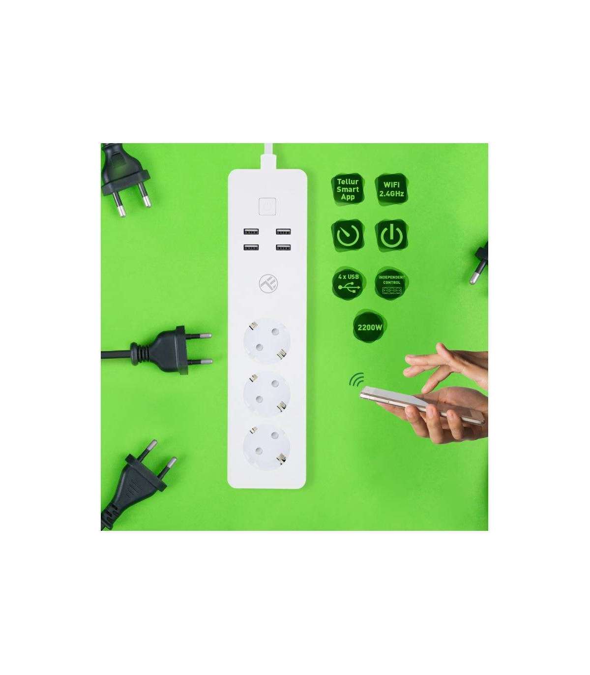 Tellur WiFi Power Strip, 3 Outlets, 4*USB 4A, 2200W, 10A, 1.8m