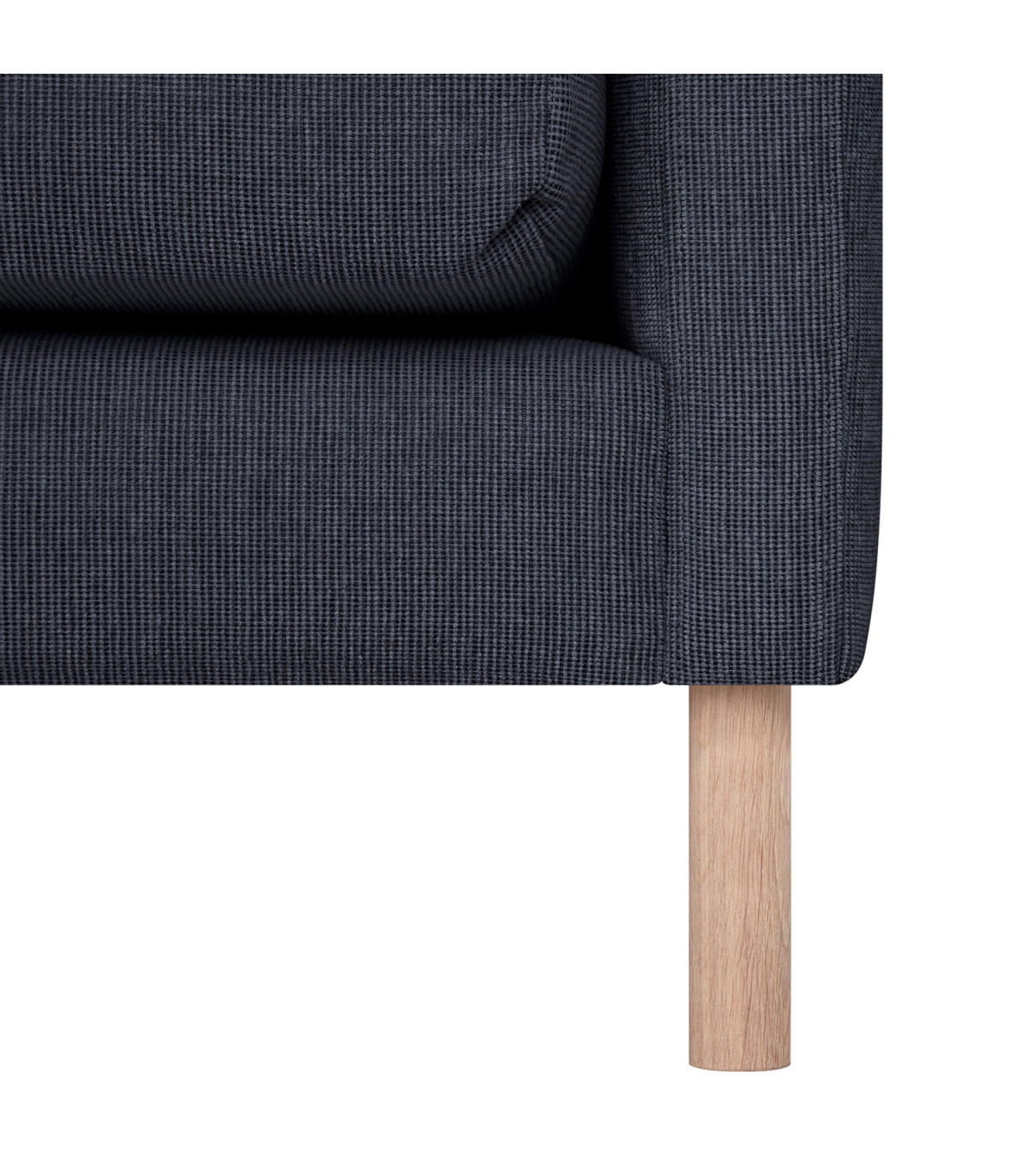 Угловой диван LISANNA LC синий. Диван обтянут синой полиэстеровой тканью. Подушки сиденья и спинки изготовлены из пеноматериала. Подушки имеют съемные чехлы. Ткань Martindale 30 000. Каркас изготовлен из массива дерева, фанеры, ДВП и ДСП. Каркас покрыт поролоном. Диван имеет зигзагообразную подвеску. Ножки дивана изготовлены из дуба. Высота сиденья 46 см, глубина 57 см. Размеры изделия 260x205/90xH80см. Продукт произведен в Литве.