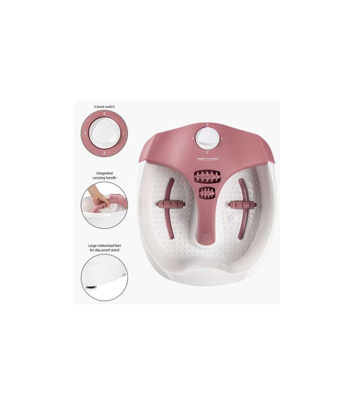 - 4 possible applications: Selective foot reflexology, Vibration massage, Whirl/warmth, Vibration massage/whirl/warmth