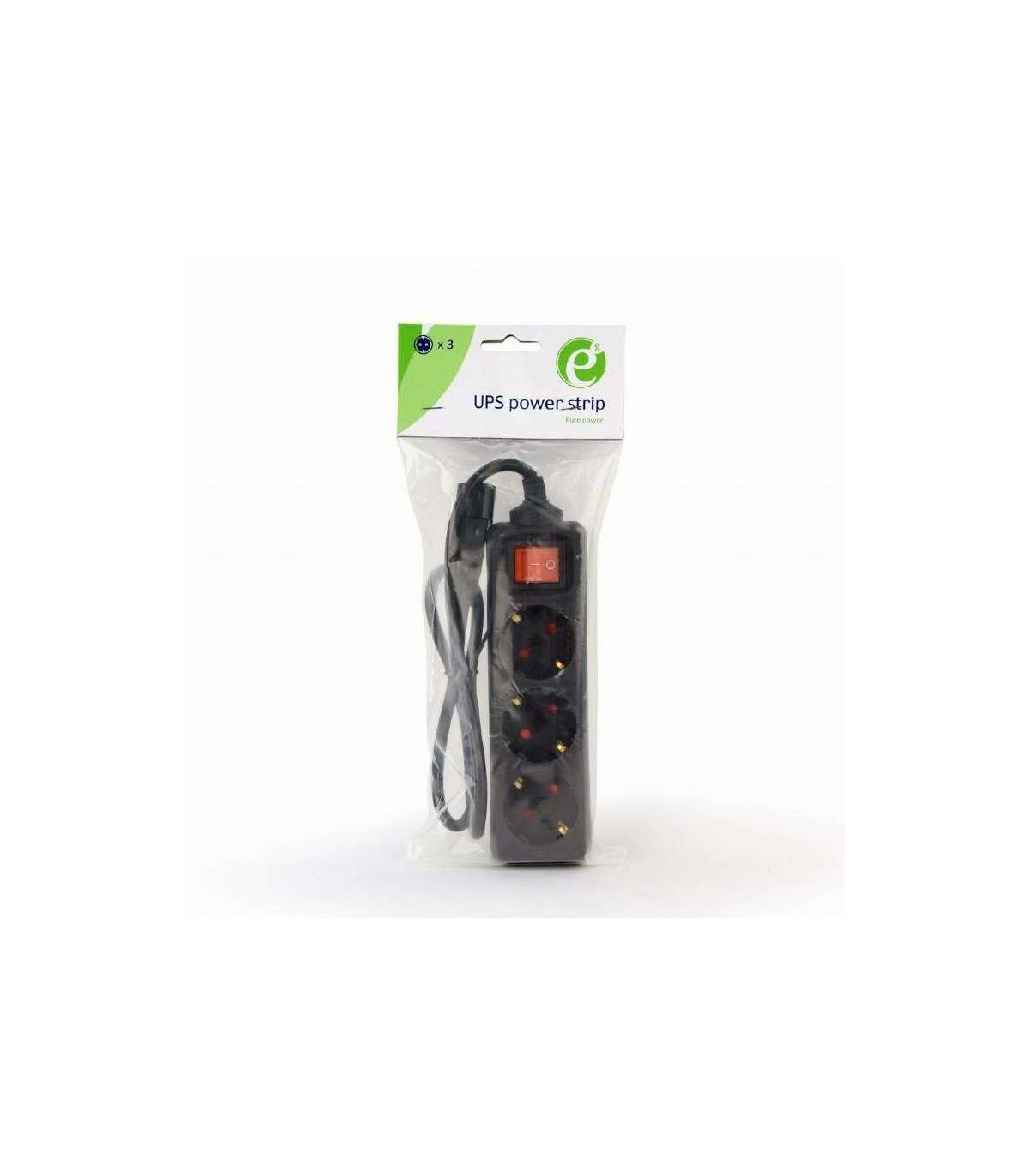 UPS power strip, 3 Schuko sockets, fused switch, 16 A, C14 plug, 0.6 m cable, black