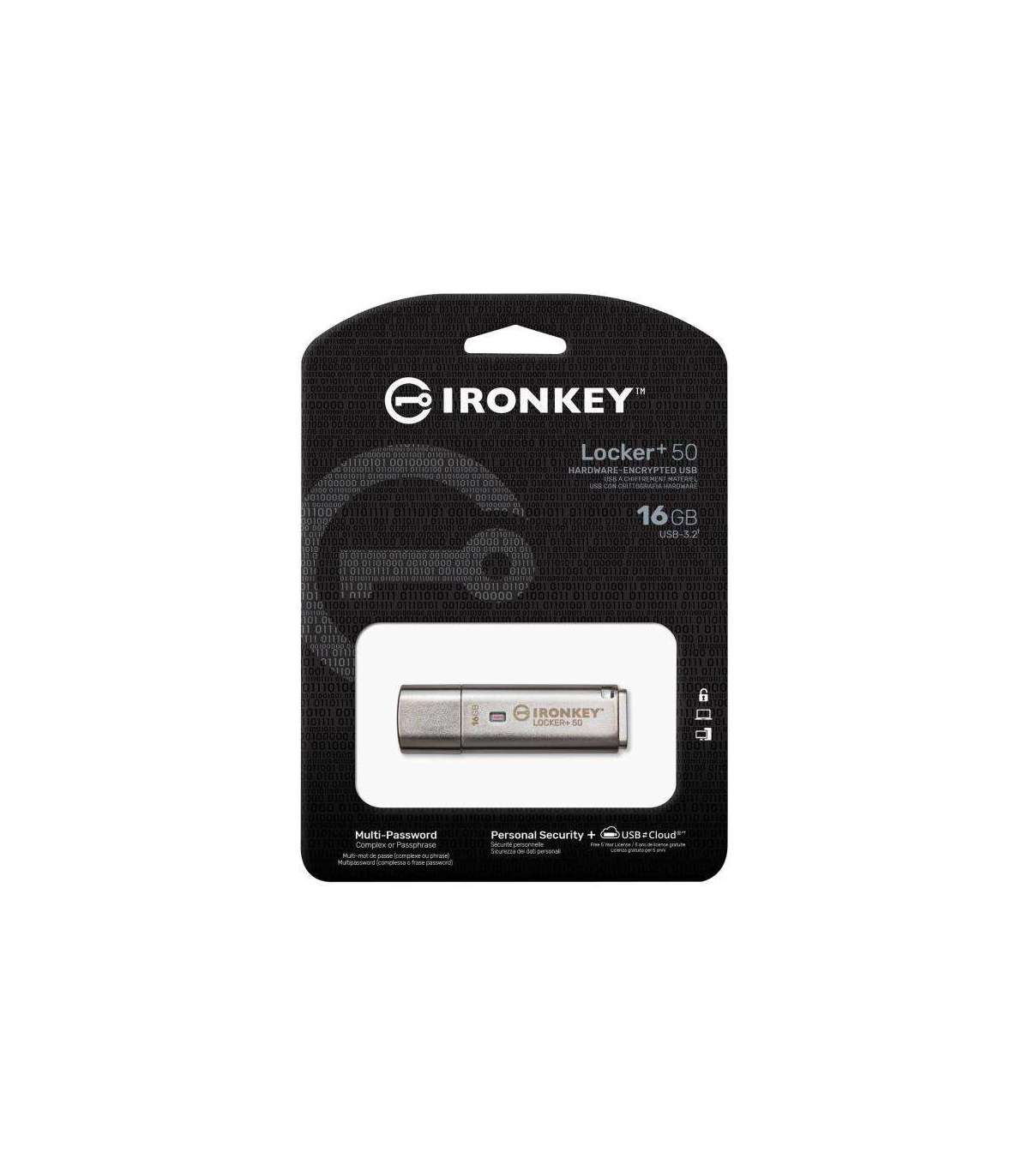Flash drive features Encryption | IronKey | IronKey Locker+ 50 | 1xUSB 3.2 | Capacity 16GB | Read speed 145 MBytes/sec | Write speed 115 MBytes/sec | Windows 11 | Windows 10 | Windows 8 | MacOS