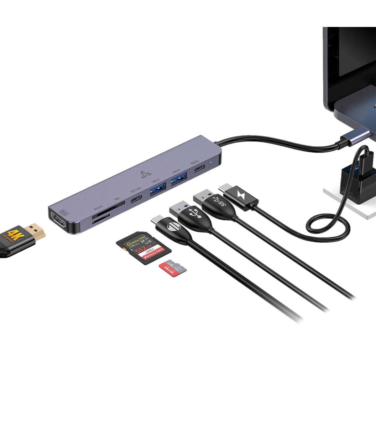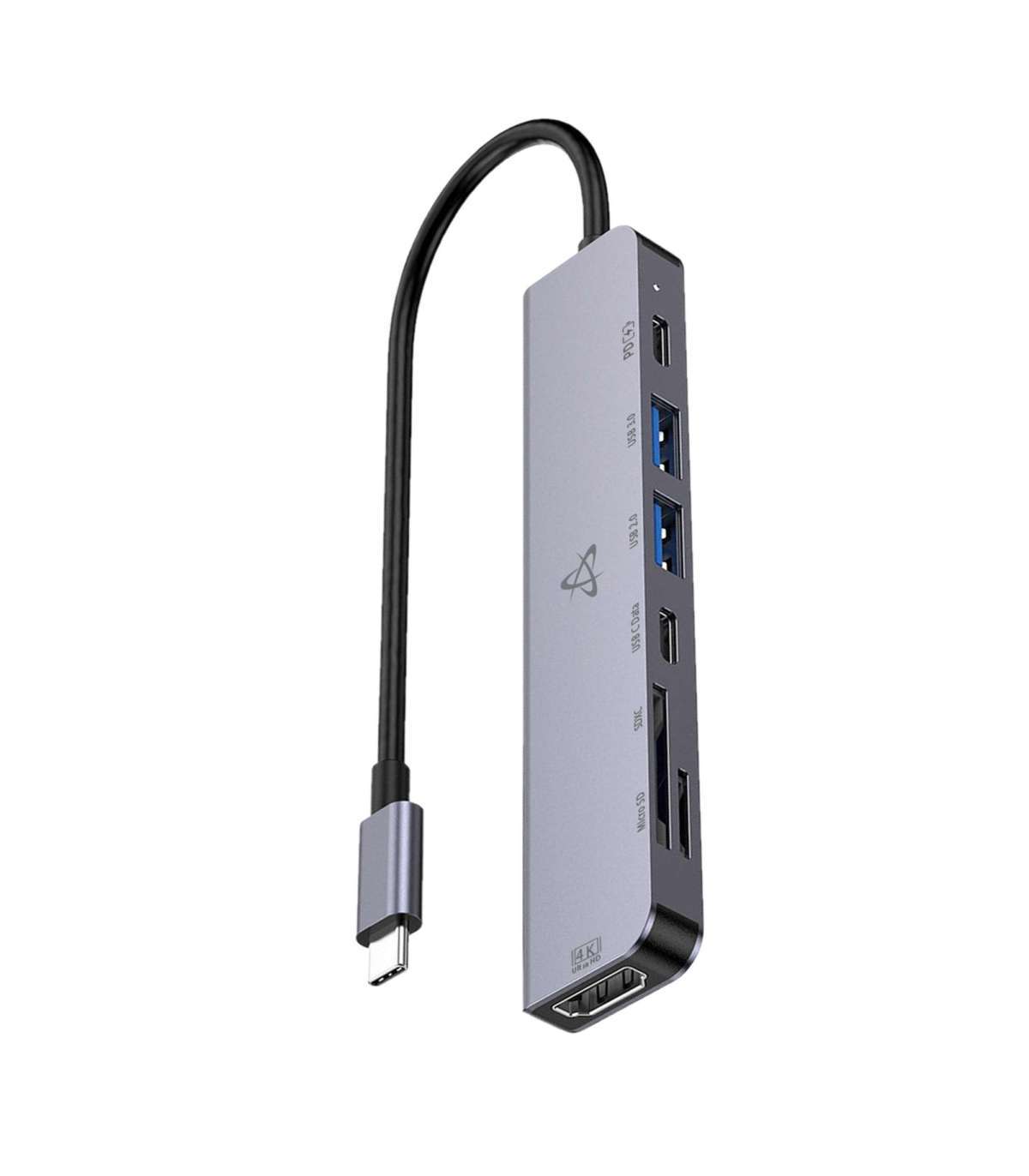 Sellel elegantsel hõbedasel jaoturil on 4K HDMI-port, 100 W Type-C laadimine, kiire USB 3.0 ja mitmekülgsed SD/Micro SD pesad.
