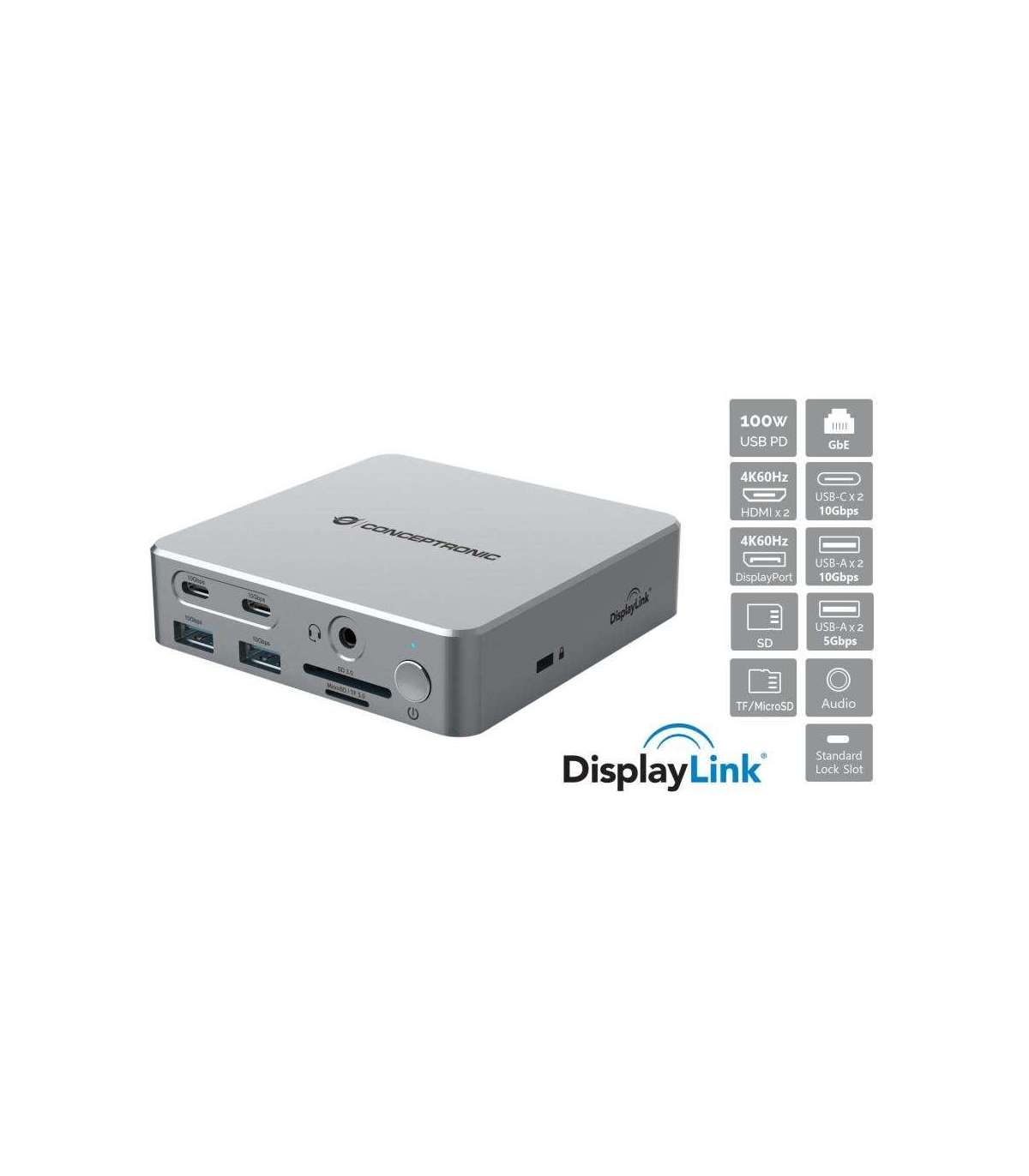 Conceptronic DONN25G 15-in-1 DisplayLink USB 3.2 Gen 2 Docking Station, Triple 4K60Hz, HDMI, DP, USB