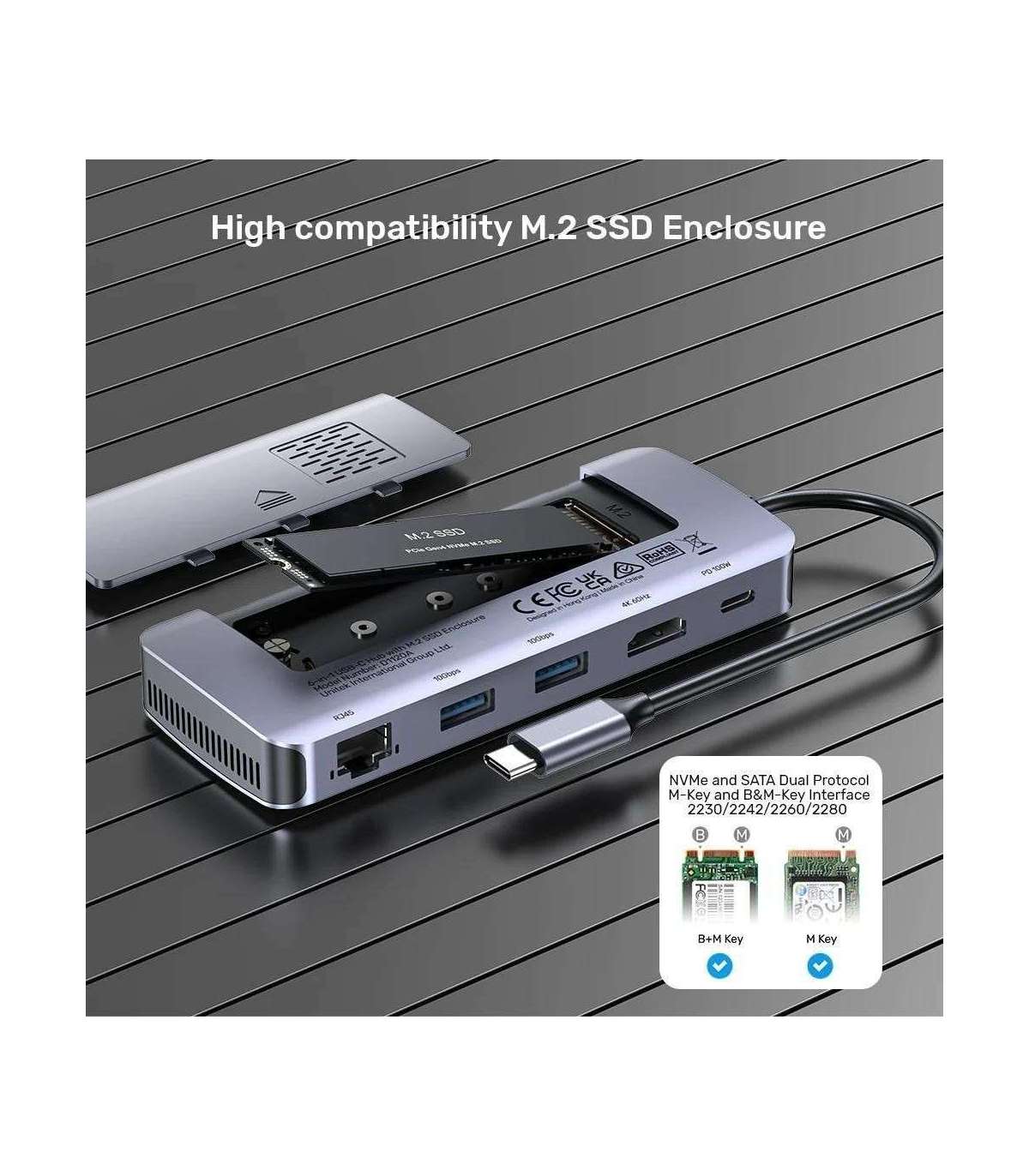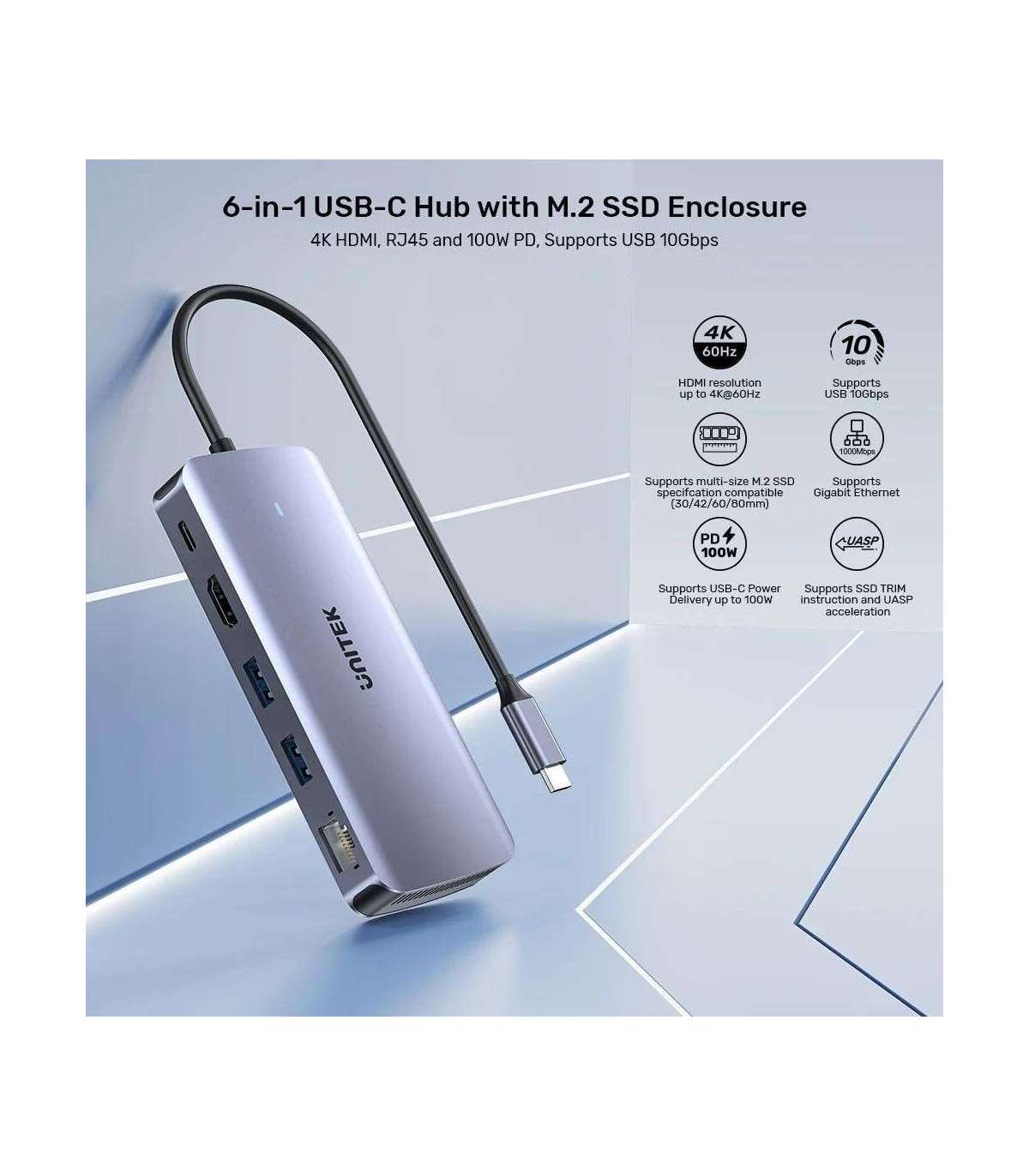 UNITEK ACTIVE HUB USB-C 10GBPS,M.2,HDMI, PD 100W