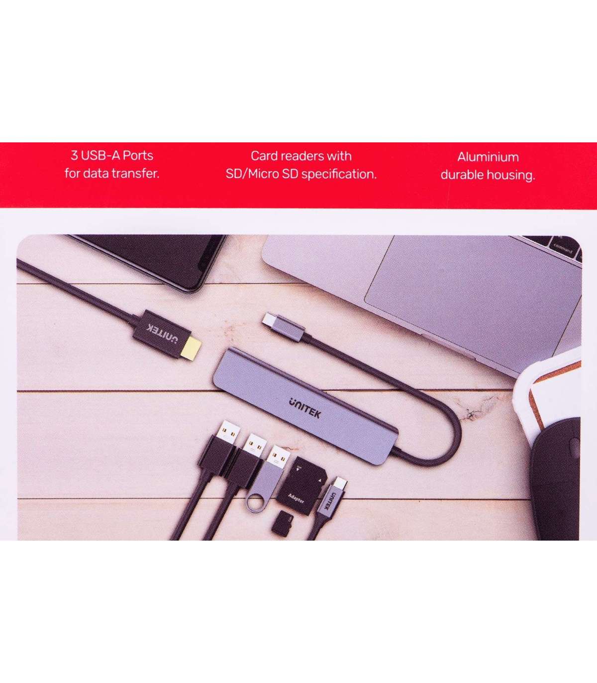 UNITEK HUB USB-C H1118A USB-A x3, USB-C, HDMI, SD, microSD