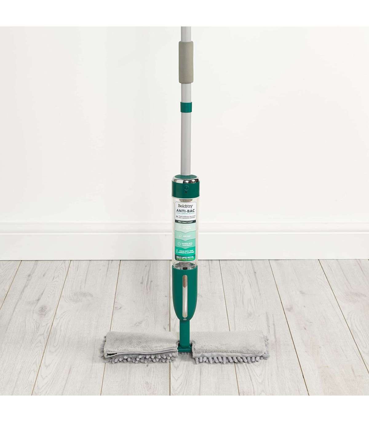 See Beldray antibakteriaalne pihusti ja puhastusmopp sobib suurepäraselt mitmesuguste pindade puhastamiseks kõvadest põrandatest akende ja vannitubadeni.