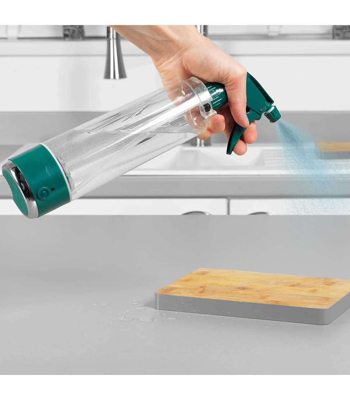 Keskkonnateadlikul pihustusmopil on 400 ml korduvtäidetav kassett ja elektrolüüsiprotsess aitab vähendada keemilisi jäätmeid.