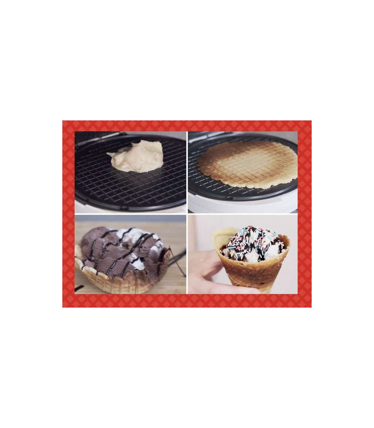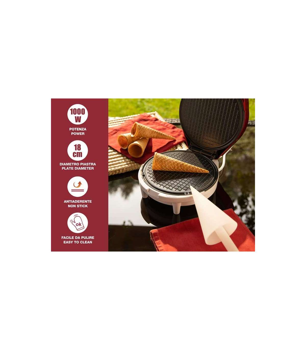 Ideaalne krõbedate vahvlite, jäätisetopsi torbikute või korvikeste, soolaste suupistete, juustuvahvlite, munarullide valmistamiseks.
