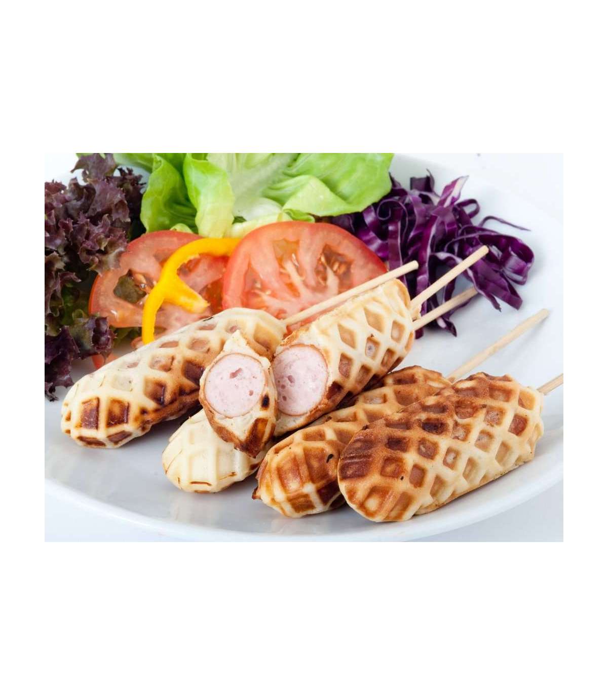 Mittekleepuva plaadi ja mittekuumeneva käepidemega vahvliküpsetaja, mis võib korraga moodustada kuni 6 vahvlit. Võimalus panna pulki küpsetamise ajal või pärast seda nii, et pulkade vahvlid oleksid teie käsi puhastamata kasutusvalmis või kaunistatud. Varustatud töövalguse ja valmisvalgusega. Stabiilse libisemiskindla jala ja toitejuhtme kerimisega. Pärast kasutamist hoida püsti.
