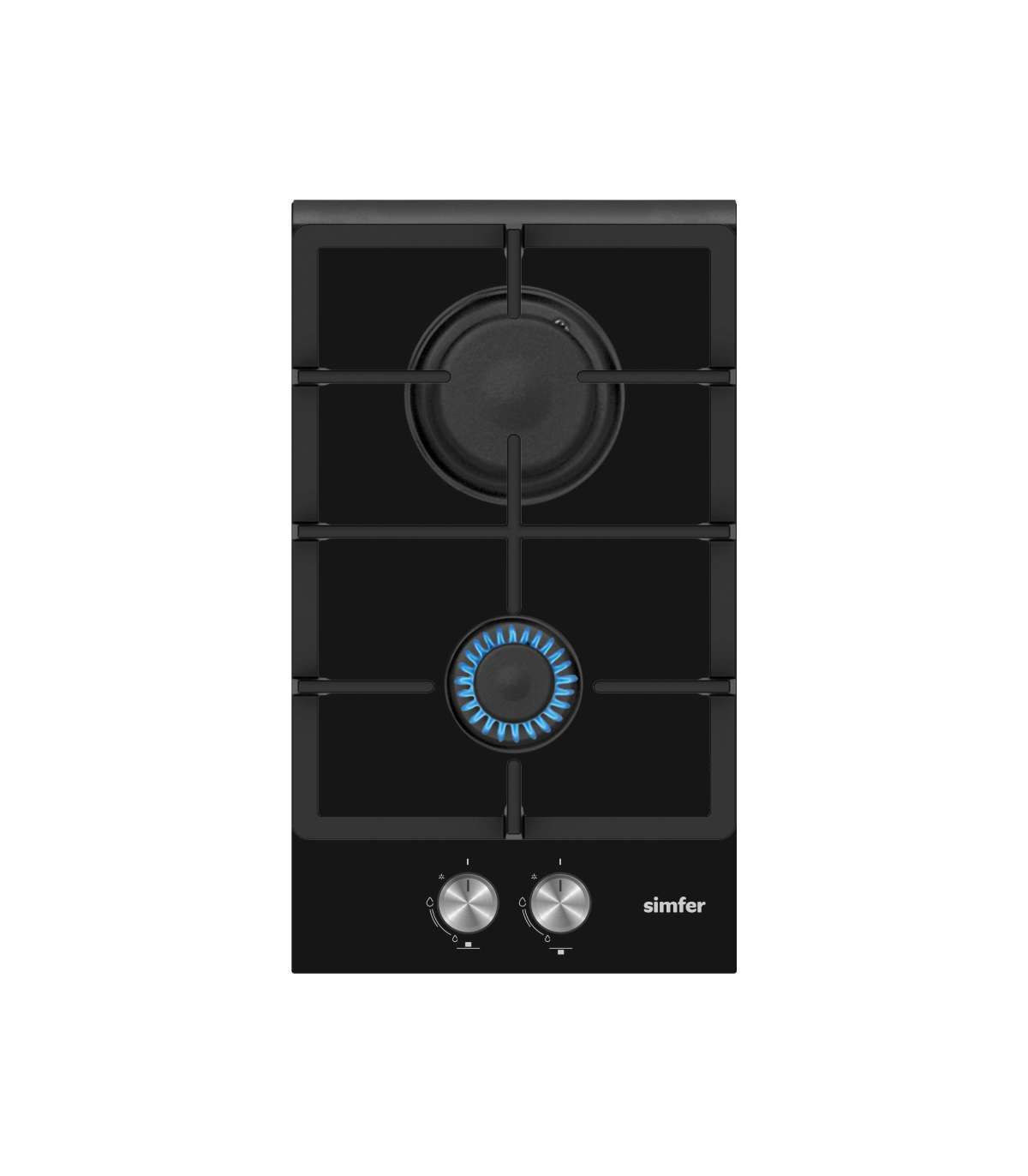 Simfer | Hob | H3.201.TGRSP | Gas on glass | Number of burners/cooking zones 2 | Rotary knobs | Black
