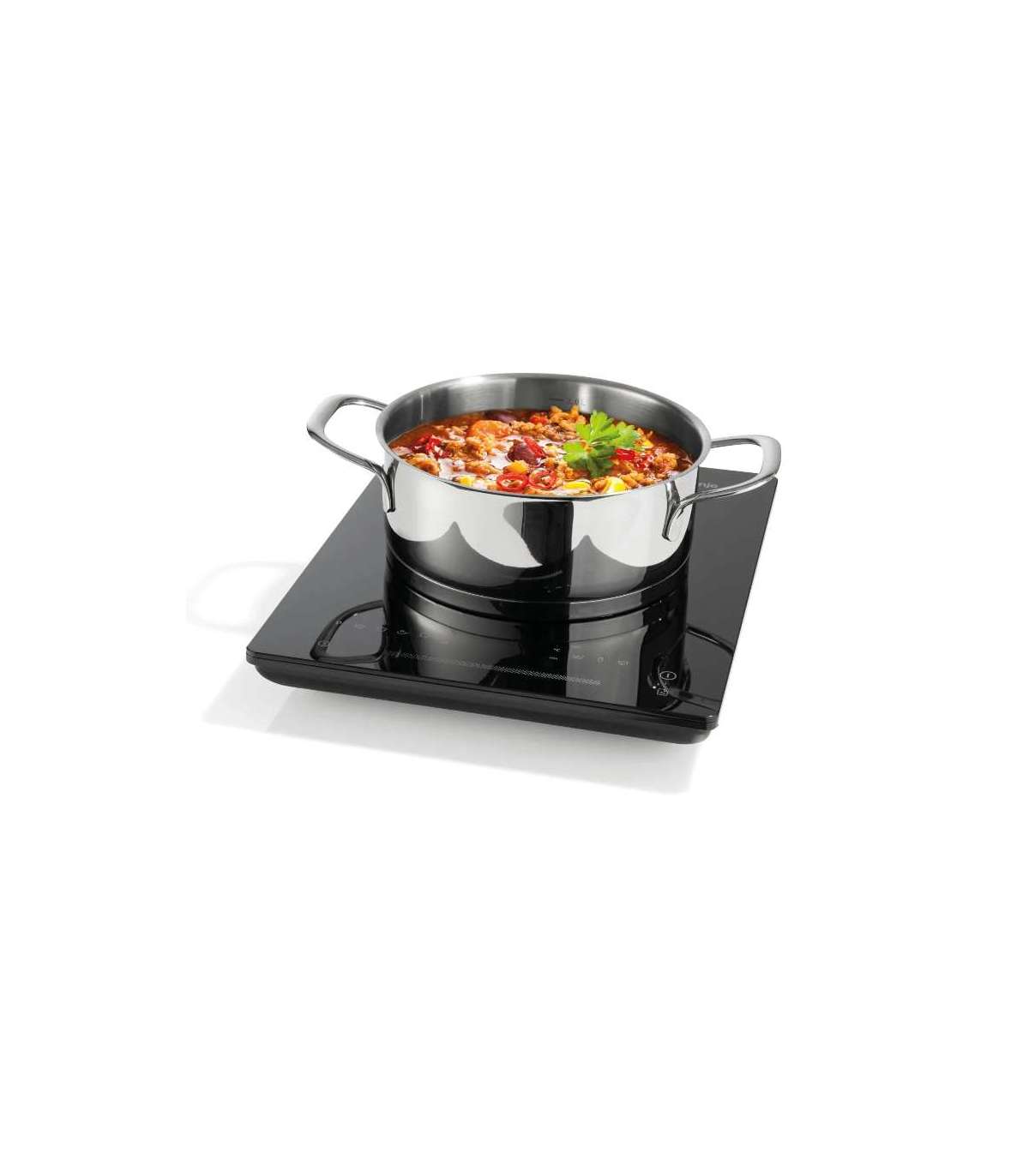 - With the sensor button "menu" choose between 7 preset programs, including hotpot, stew, stir fry, soup, boil, milk and steam. Cooking will start automatically with preset power or temperature and for the preset time.