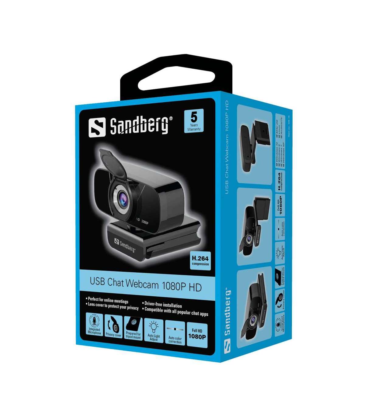 Sandbergi USB-vestluse veebikaamera 1080P HD pakub teile teravat ja selget pilti tänu Full HD 1080P eraldusvõimele. See töötab koheselt ilma draiveri installimata. Kaameral on ka mikrofon.