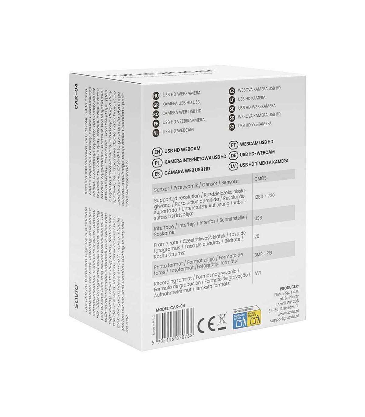 Savio CAK-04 webcam 720 MP 1280 x 720 pixels USB Black