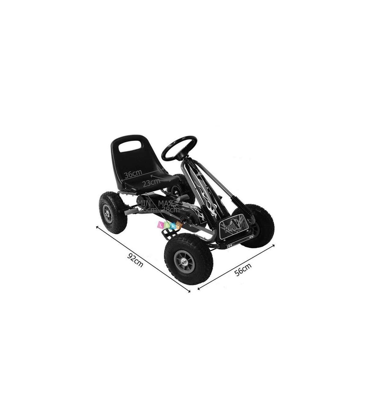 The proper chassis design makes the go kart easy to drive even for kids at the age of 4 or having at least 105cm height. Adjustable seat is very useful to modify the position when your kid grows up and would love to still drive a go kart. Maximum weight of a driver should not exceed 30kg.