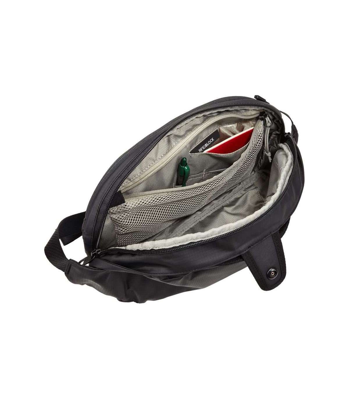 Содержимое надежно защищено в основном отделении благодаря потайным молниям, откидному отверстию и клапану на кнопке, который застегивается поверх молнии для дополнительной безопасности.