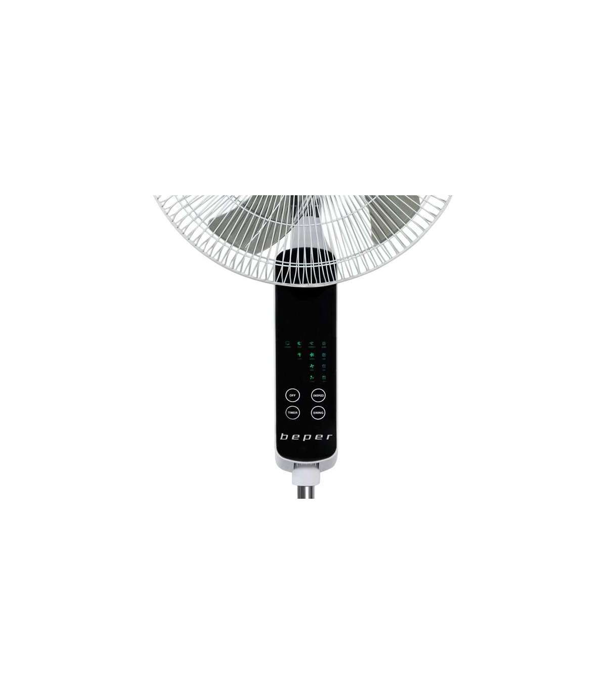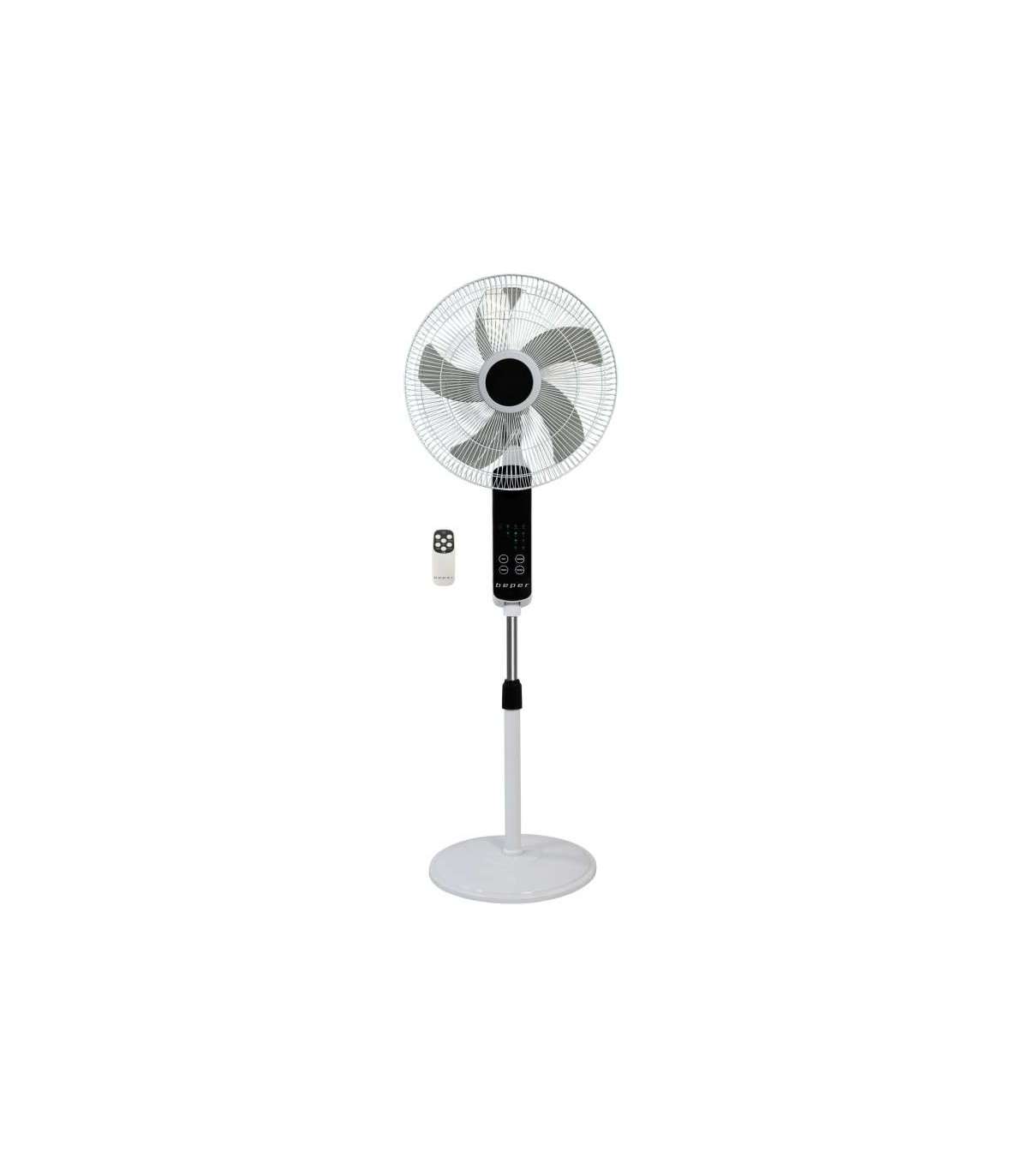 Puutetundliku ekraaniga põrandaventilaator, mis on varustatud 5 ABS-labaga, mis on kaitstud metallvõrega Ø 45cm. Puutepaneel võimaldab valida 3 kiirust, tavalist, tuule- või öist töörežiimi, valida võnkefunktsiooni ja taimeri programmeerimist kuni 7,5 tunnini. Reguleeritava kõrgusega kuni 130cm ja ümara põhjaga, et tagada maksimaalne stabiilsus. Kaasas praktiline kaugjuhtimispult.