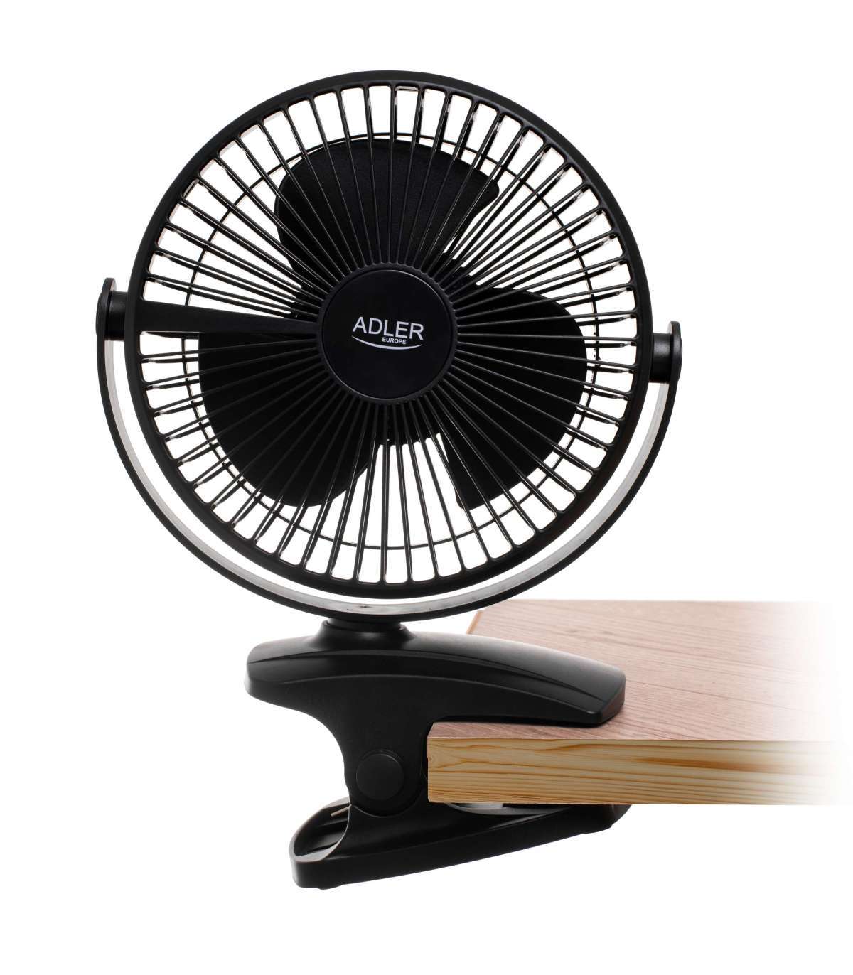 Adler Rechargeable Clip-on Desk Fan AD 7342 Table Fan Black Diameter 15.5 cm Number of speeds 3 Oscillation
