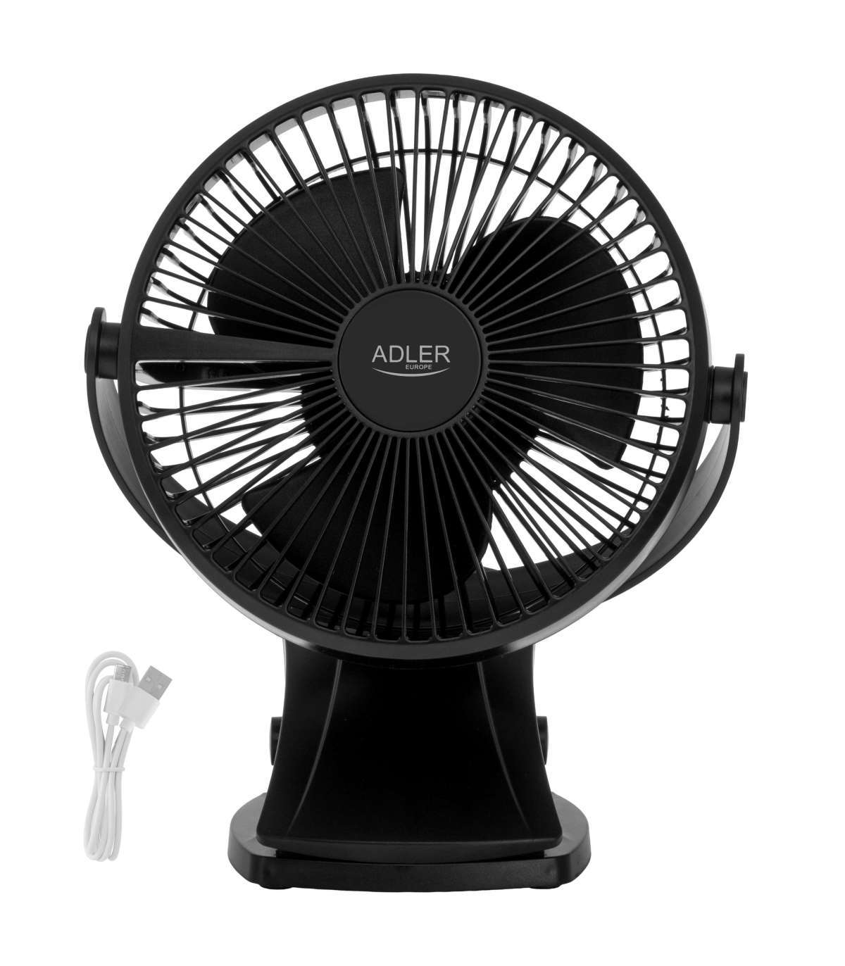 Adler Rechargeable Clip-on Desk Fan | AD 7342 | Table Fan | Black | Diameter 15.5 cm | Number of speeds 3 | Oscillation | 5 W