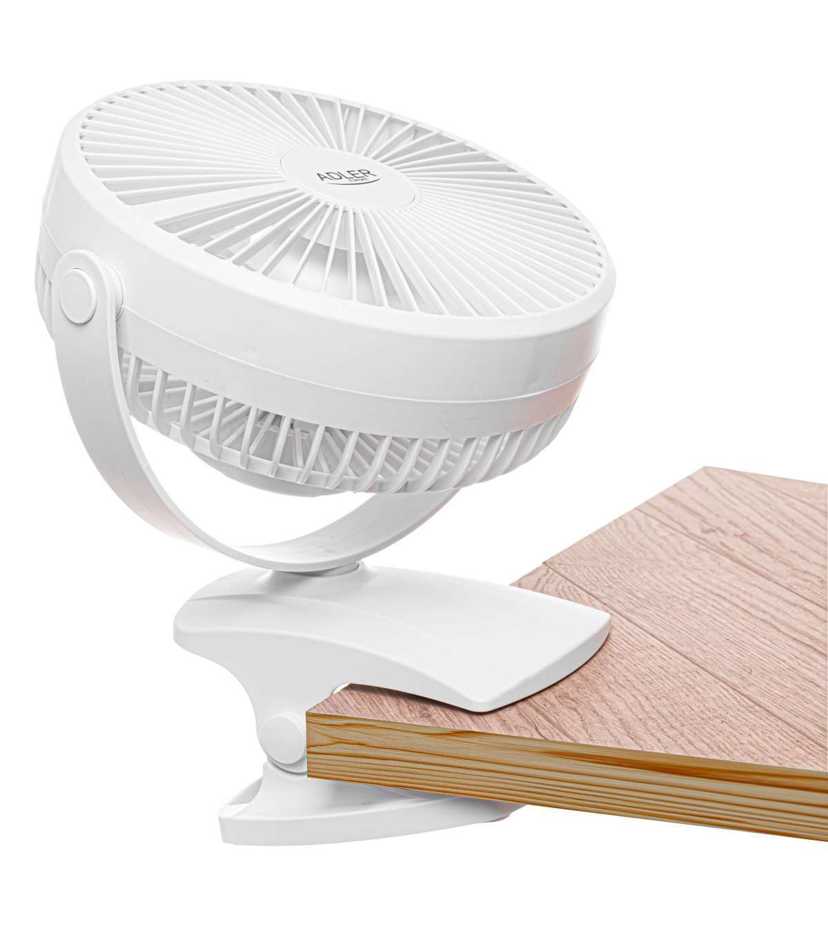 Adler Rechargeable Clip-on Desk Fan AD 7342 Table Fan White Diameter 15.5 cm Number of speeds 3 Oscillation