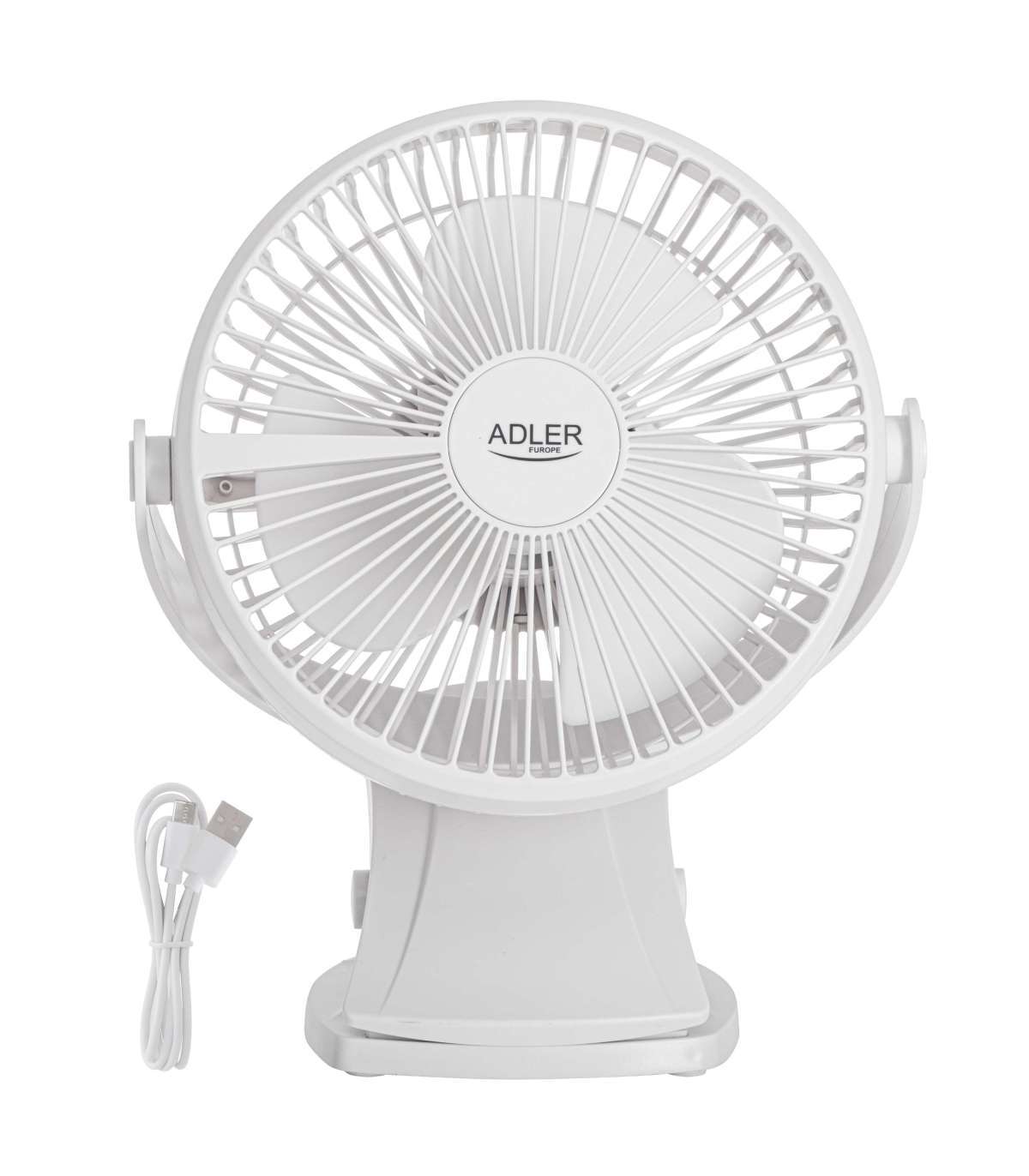 Adler Rechargeable Clip-on Desk Fan | AD 7342 | Table Fan | White | Diameter 15.5 cm | Number of speeds 3 | Oscillation | 5 W