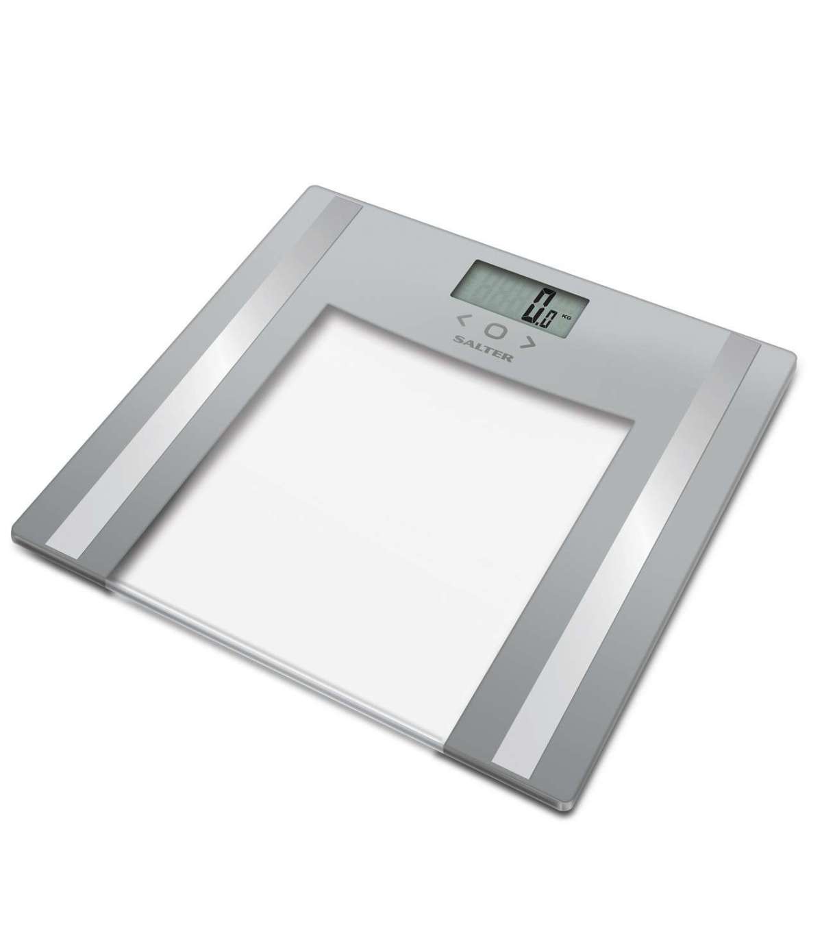 Stiilse disainiga hõbedasel kaalul on karastatud turvaklaasist platvorm, mis sobib ideaalselt kõigi vannitoa sisekujundusega.