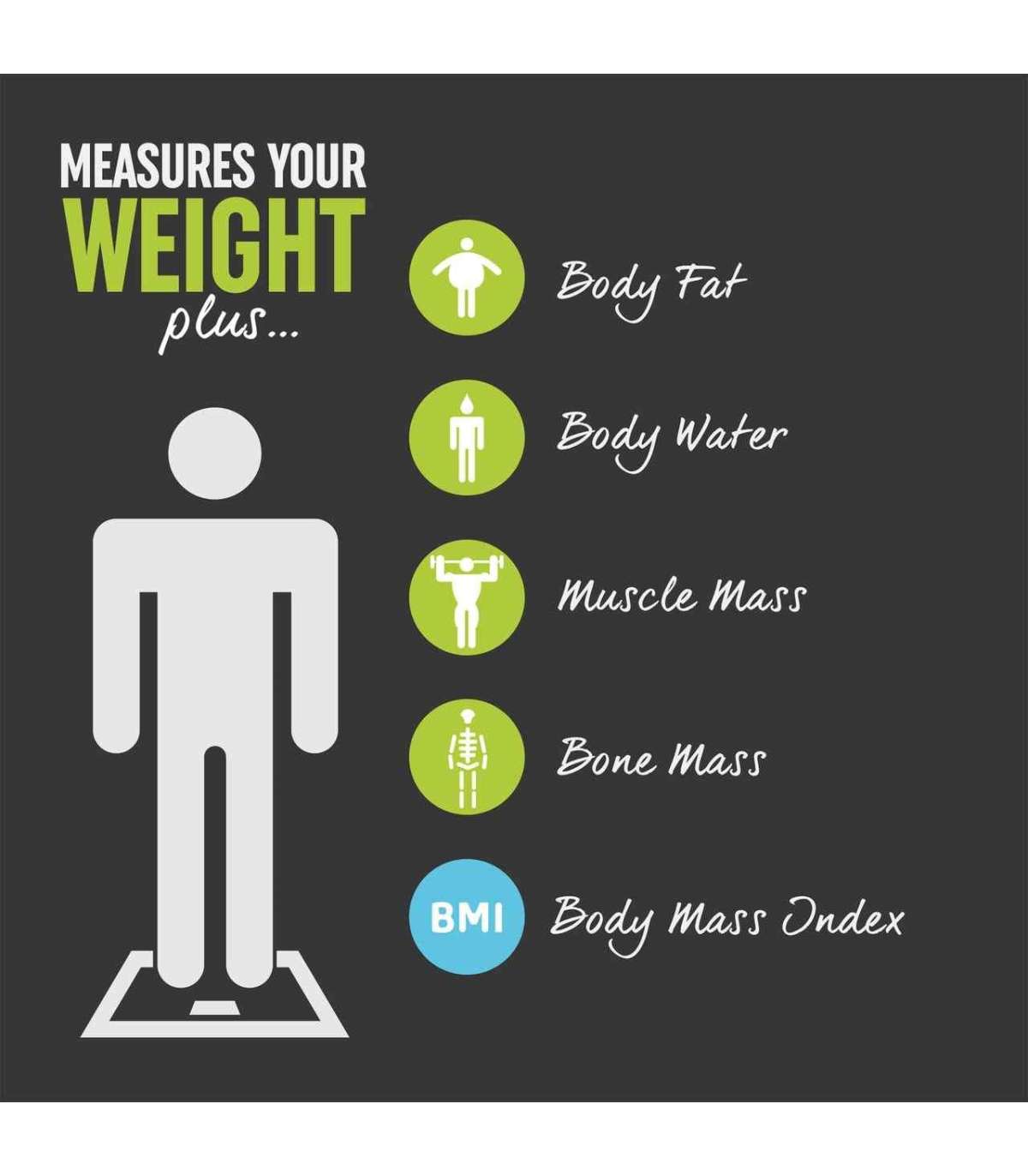 Jälgige oma tervist ja vormisolekut mitme kehakoostise mõõtmise abil; keharasv, kehavesi, lihasmass, luumass ja KMI.