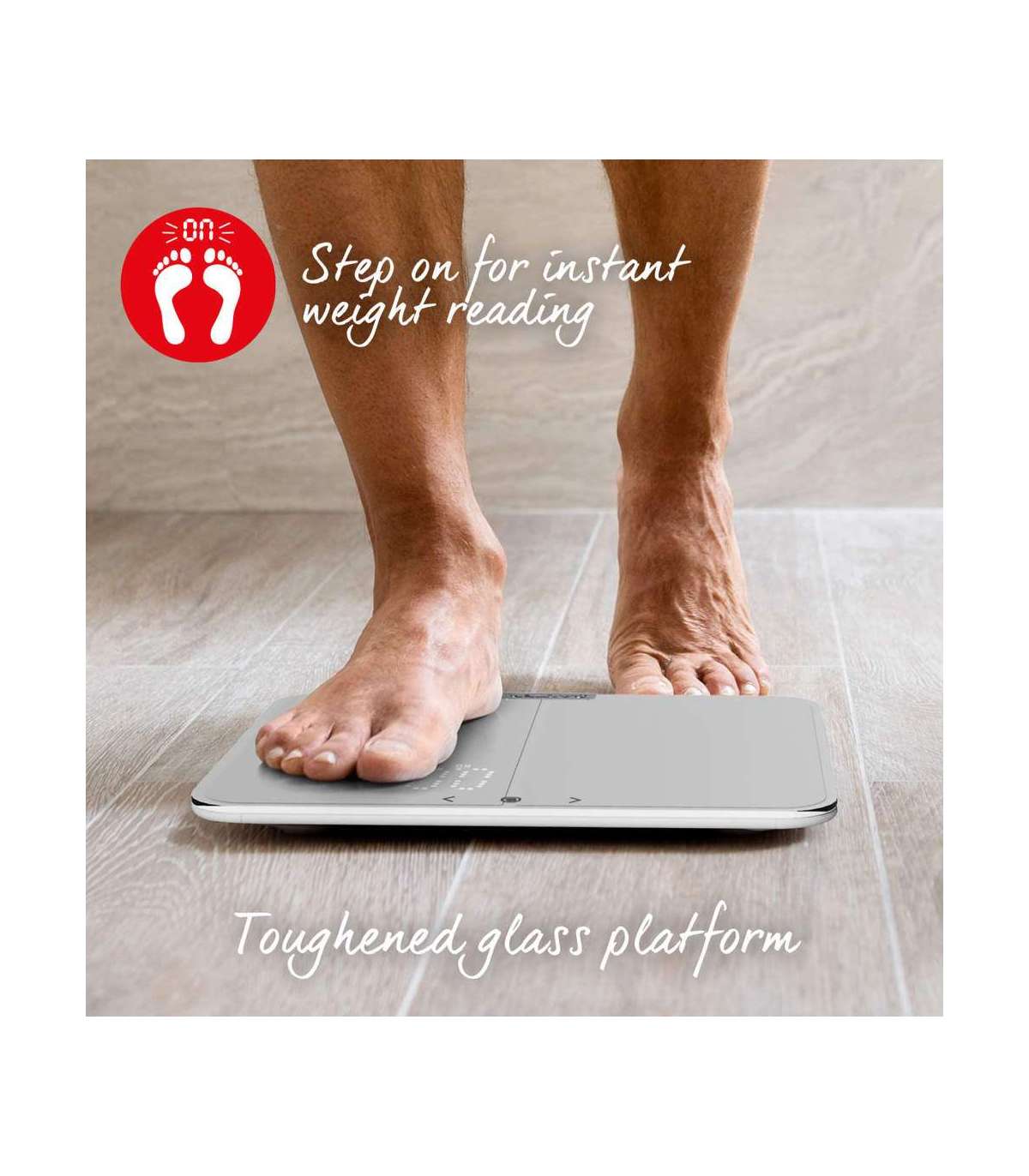 Lihtne kasutada, astuge lihtsalt peale ja saate kohe kaalunäidu. Patareid on kaasas, et saaksite oma treeningteekonda koheselt alustada.