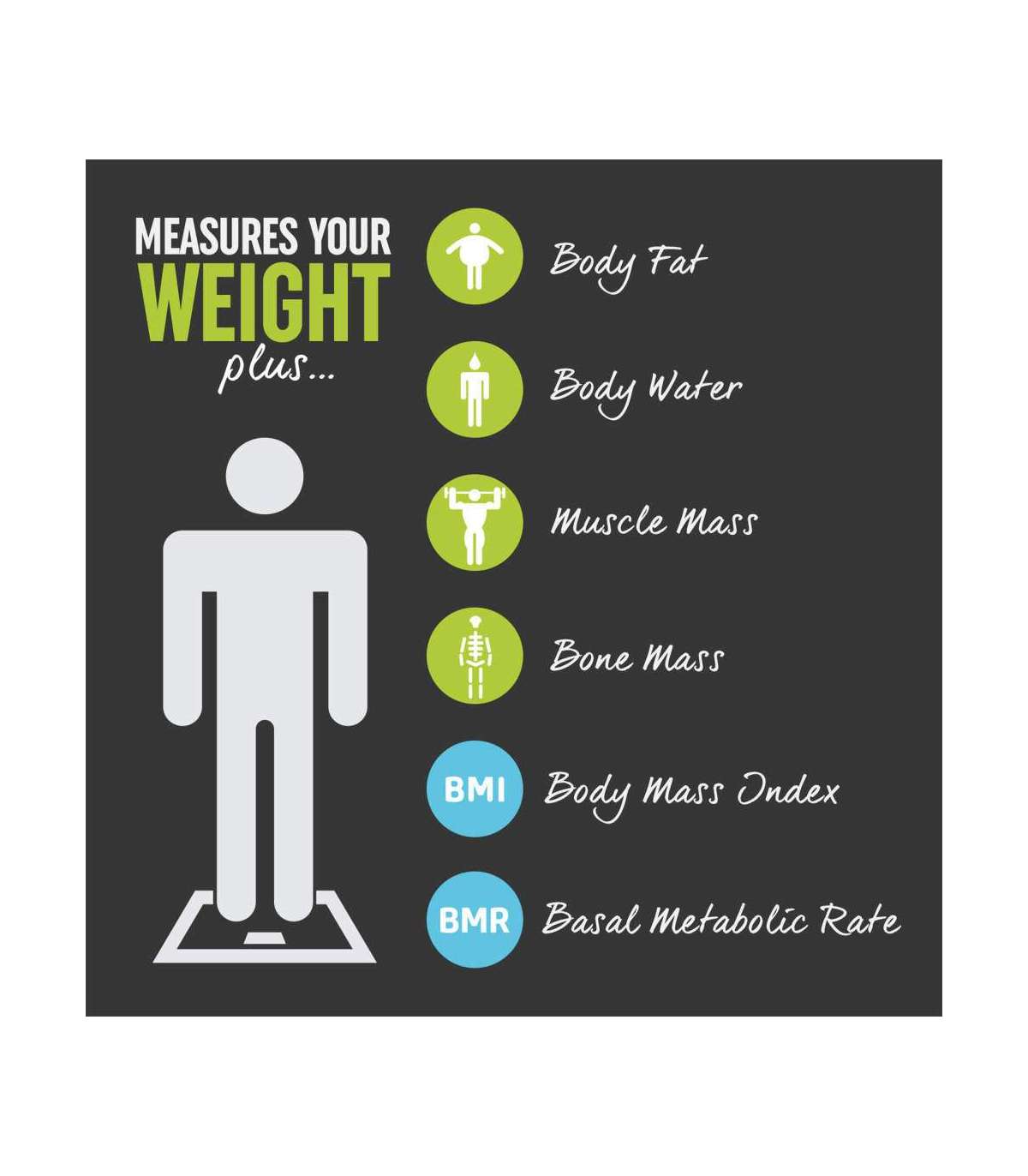Mitmekülgsed ja praktilised kaalud mõõdavad kaalu, keharasva, kehavee, lihasmassi, KMI-d ja BMR-i, et teie kehast tõeliselt aru saada.