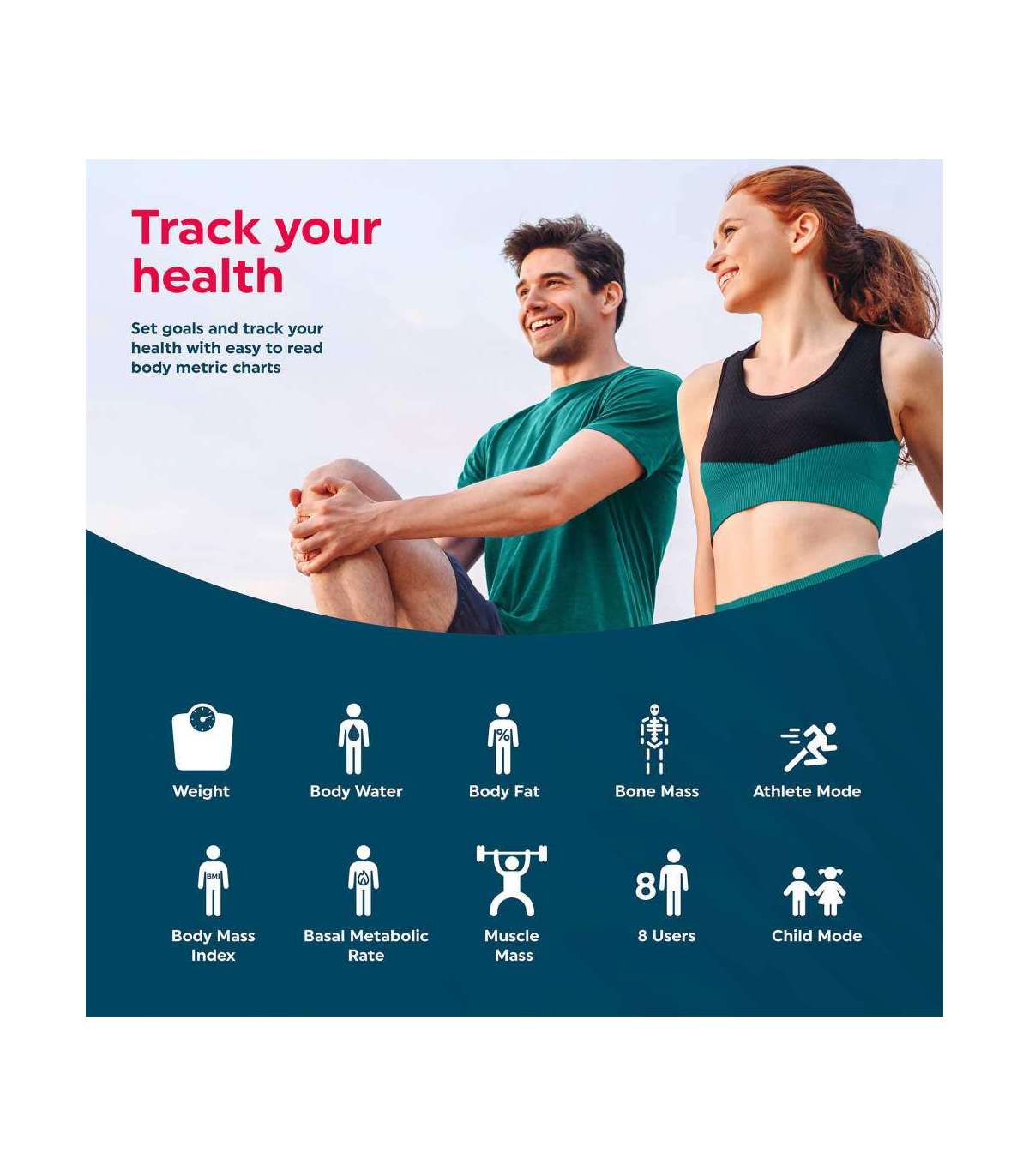 8 kasutaja mälu: 180 kg kandevõimega kaalud annavad täpseid mõõtmisi kuni 8 inimesele ja salvestavad need sinu rakendusse, võimaldades osaleda grupiväljakutsetes ja muuta eesmärkide saavutamise lõbusaks.