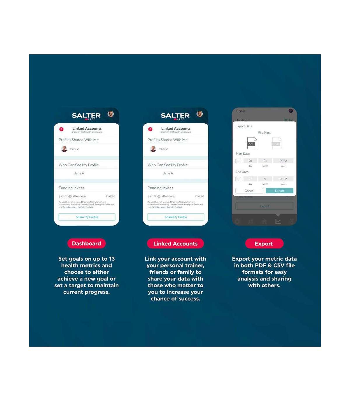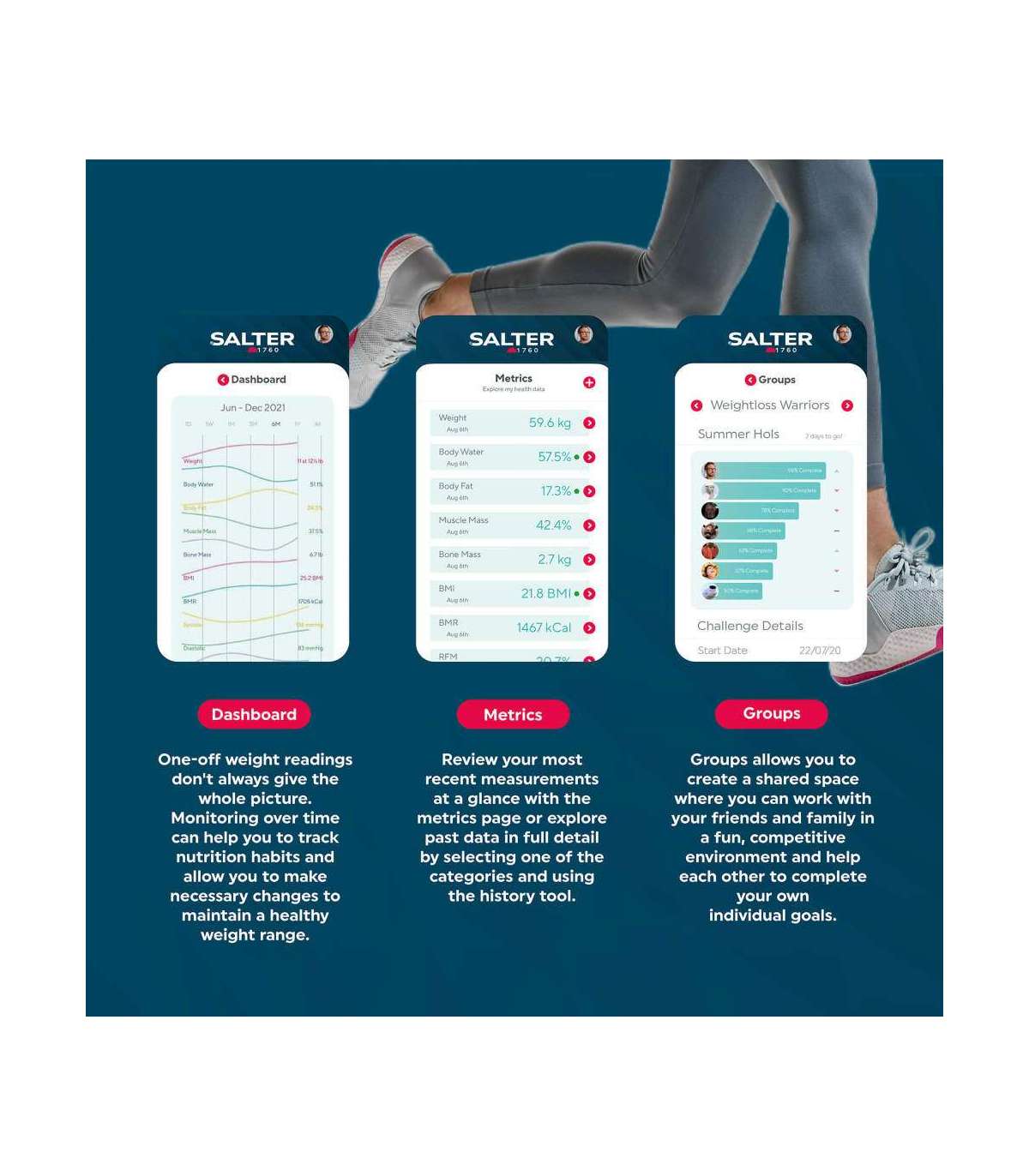 Laadi alla, sünkroniseeri ja jälgi: Keskendu oma eesmärkide saavutamisele ja jäta numbrid meie hooleks! Jälgi oma edusamme tasuta Salter Health rakenduse abil — lihtsalt laadi alla, sünkroniseeri ja alusta jälgimist.