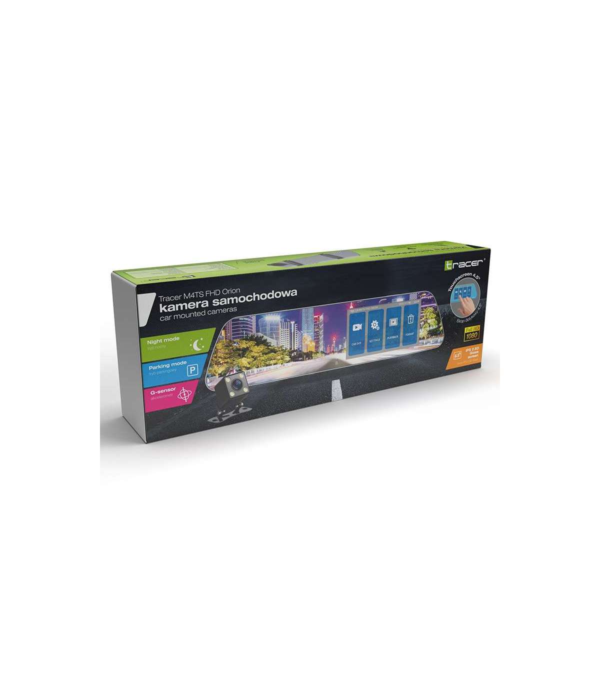 TRACER Dash Camil on lihtsalt loetav 4,5-tolline IPS puuteekraan, mis võimaldab lihtsat ja mugavat kasutamist ning juurdepääsu kõikidele funktsioonidele. Saate taasesitada ka naturaalsete, hästi reprodutseeritud värvidega salvestusi. See on valmistatud karastatud klaasist, mis muudab selle vastupidavaks kriimustustele ja kahjustustele. Seade on varustatud microSD-kaardi pesaga, mille maksimaalne maht on kuni 128 GB, kuid mäluruumipuuduse pärast ei pea muretsema – silmussalvestuse funktsioon võimaldab vanemaid salvestisi üle kirjutada, et miski ei takistaks salvestamast ootamatu, häiriv olukord.