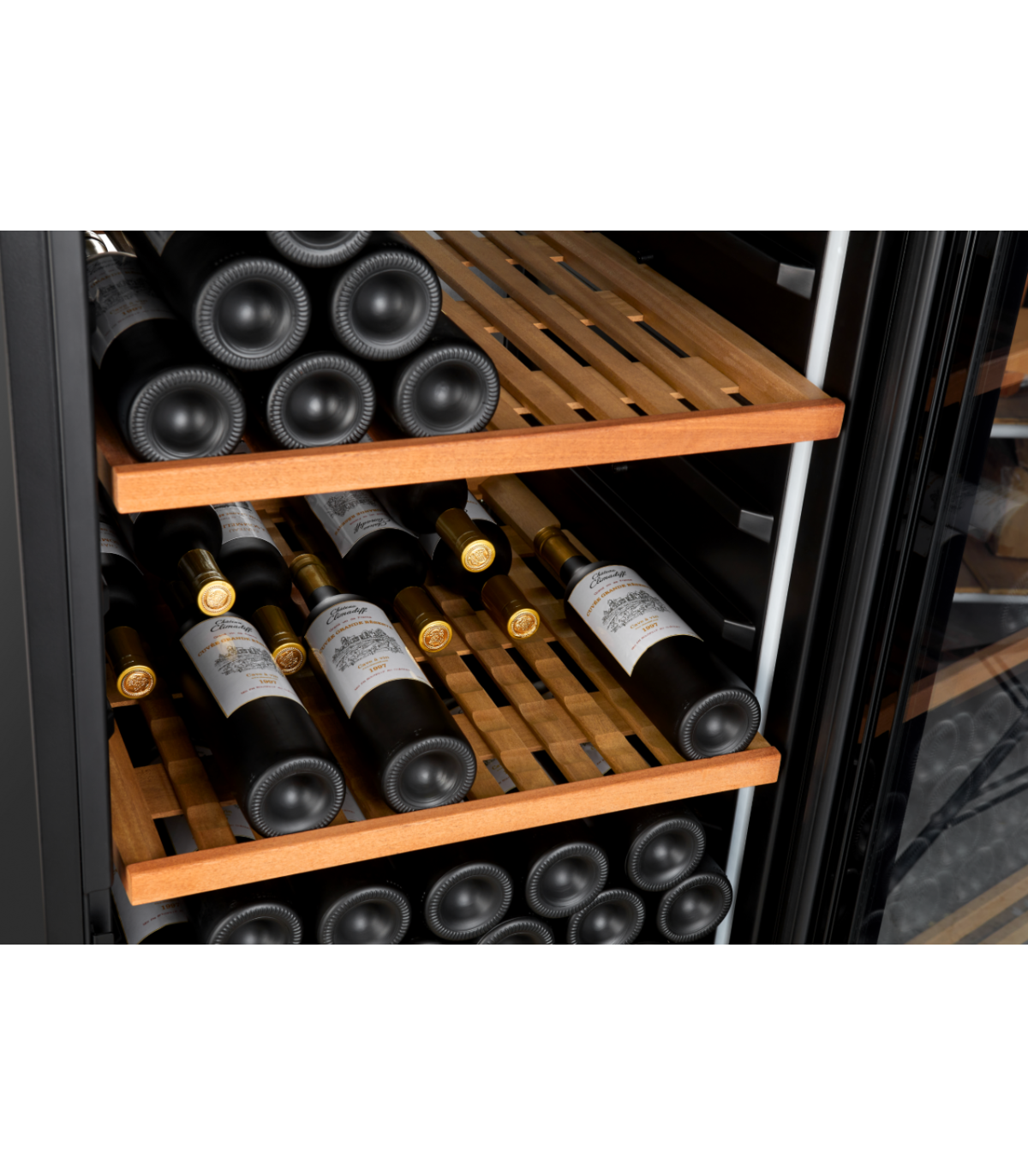 The cellars in the range are also equipped with sliding shelves made of rot-proof solid sapele wood, allowing bottles to be stored upside down or visible on the labels.